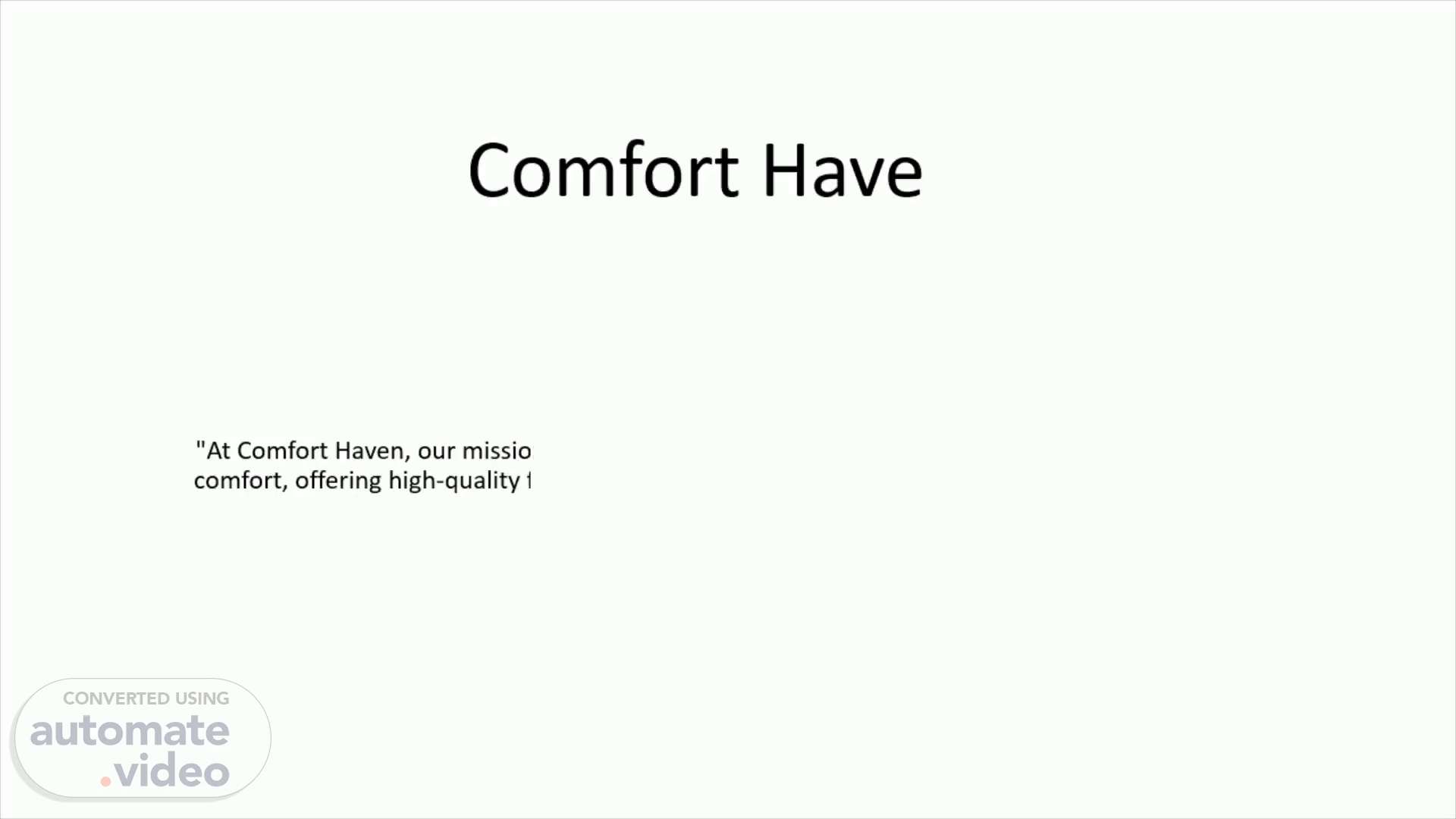 Comfort Haven. "At Comfort Haven, our mission is to create spaces that inspire and embrace the true essence of comfort, offering high-quality furniture that brings joy, style, and functionality into every home.".