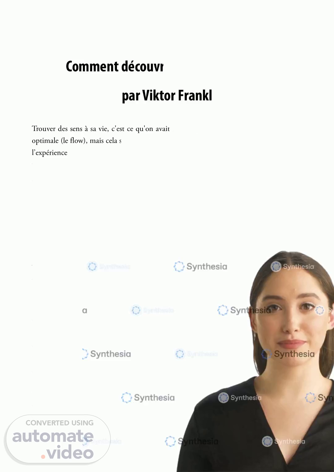 . [Virtual Presenter] Dans cette présentation, nous allons étudier la vision de Viktor Frankl sur la manière de trouver du sens à sa vie dans les pires conditions. Contrairement à ce qu'on pourrait penser, cela ne veut pas dire se résigner à la situation, mais plutôt lui accorder du sens de façon autodéterminée. Cela signifie trouver de l'importance et de la signification même dans les conditions les plus contraignantes et les plus douloureuses. Frankl développe des méthodes thérapeutiques très originales pour aider les personnes à trouver un sens à leur vie, comme le logodrame par exemple. Dans le cadre de cette méthode, on s'imagine sur son lit de mort en pensant à sa vie et à ce que l'on voudrait accomplir. Frankl raconte que cette méthode a permis à une femme de trouver du sens à sa vie alors qu'elle avait perdu un fils handicapé et qu'elle avait tenté de se suicider. Finalement, elle s'est rendue compte qu'elle avait fait de son mieux pour son fils et que sa vie n'avait pas été un échec. Ce sens était là aussi dans les circonstances les plus douloureuses. Nous tâcherons donc d'observer dans cette présentation comment Viktor Frankl aussi trouvé un sens à sa propre vie dans un environnement terrible..