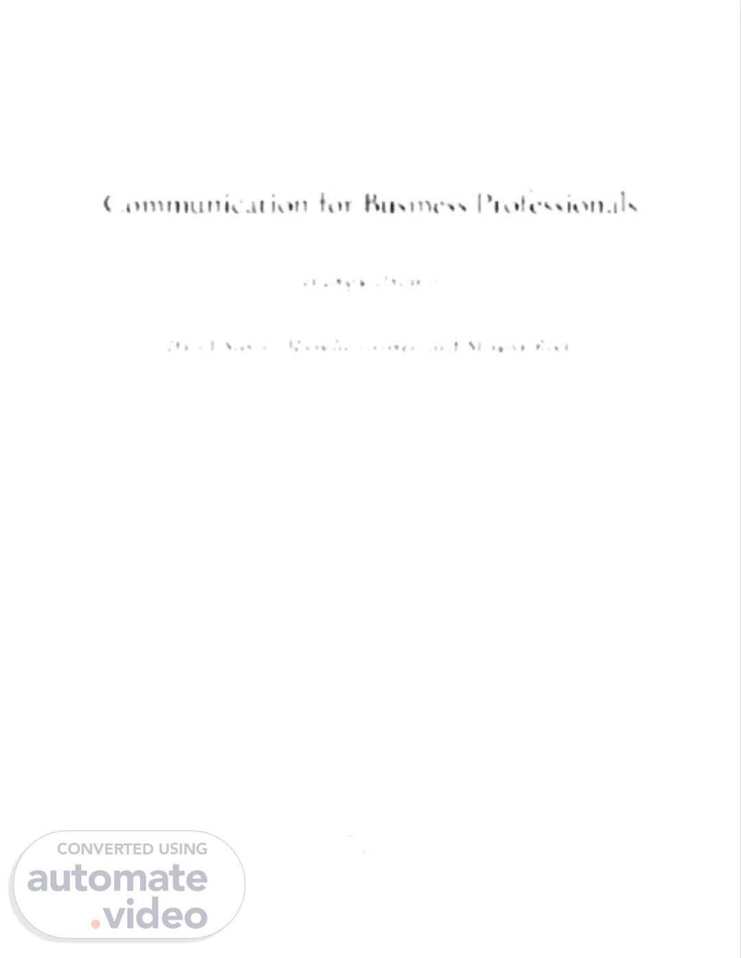 [Audio] This textbook Communication for Business Professionals: Canadian Edition 2018 provides students with the essential skills and knowledge to be prepared for their future careers. It provides engaging content to support the foundational outcomes and objectives of business courses in Canadian colleges. Through a collaboration between eCampusOntario's program managers and a group of college educators from Ontario the textbook was adapted from a previously existing resource reducing the content to align with Canadian college curriculum and adding Canadian examples. Furthermore two open textbooks were used to remix the content of the 12 chapters offering a comprehensive resource designed to ensure students are well-equipped to tackle the challenges of communication in the professional world..