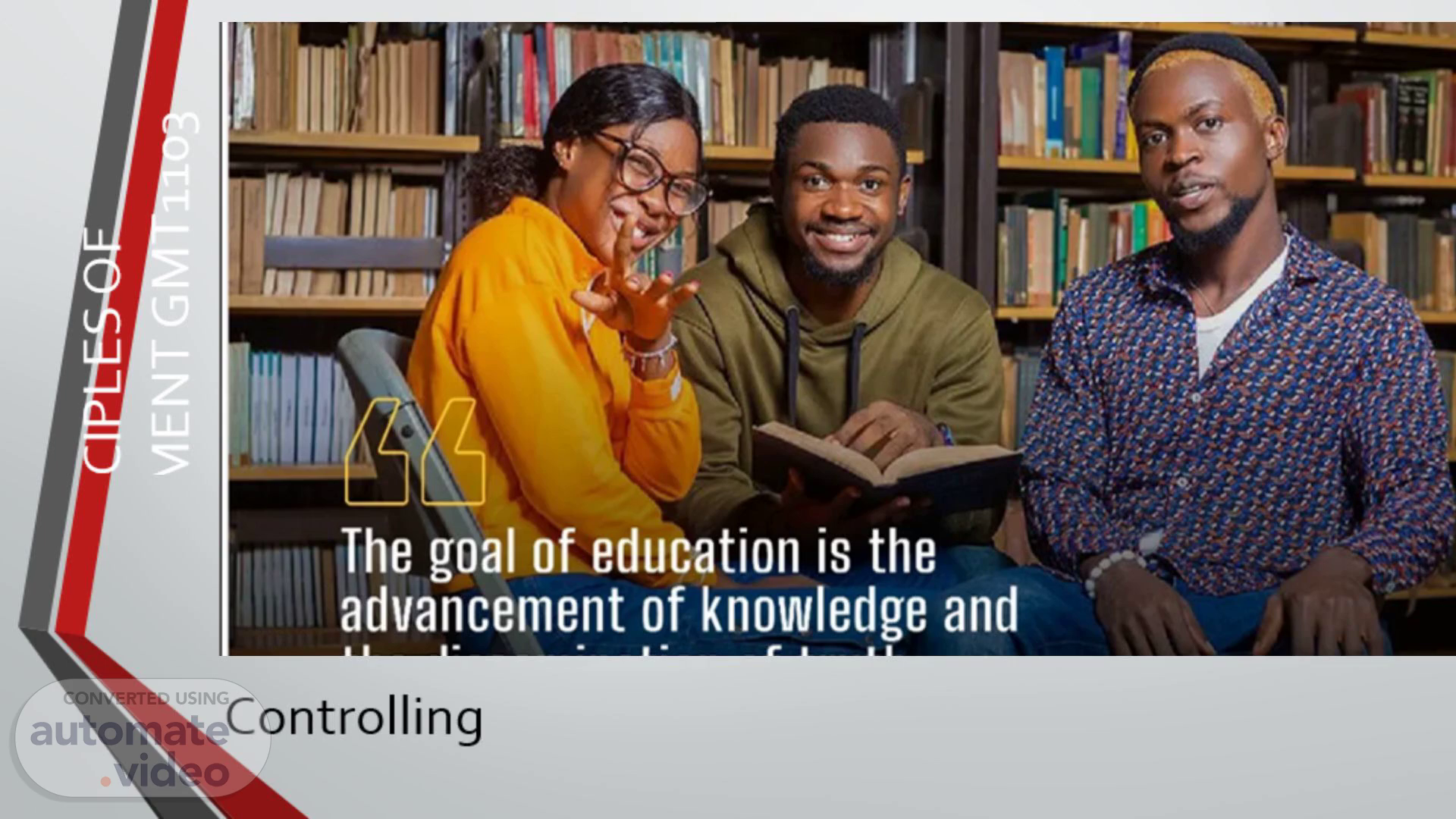 PRINCIPLES OF MANAGEMENT GMT1103. Controlling.