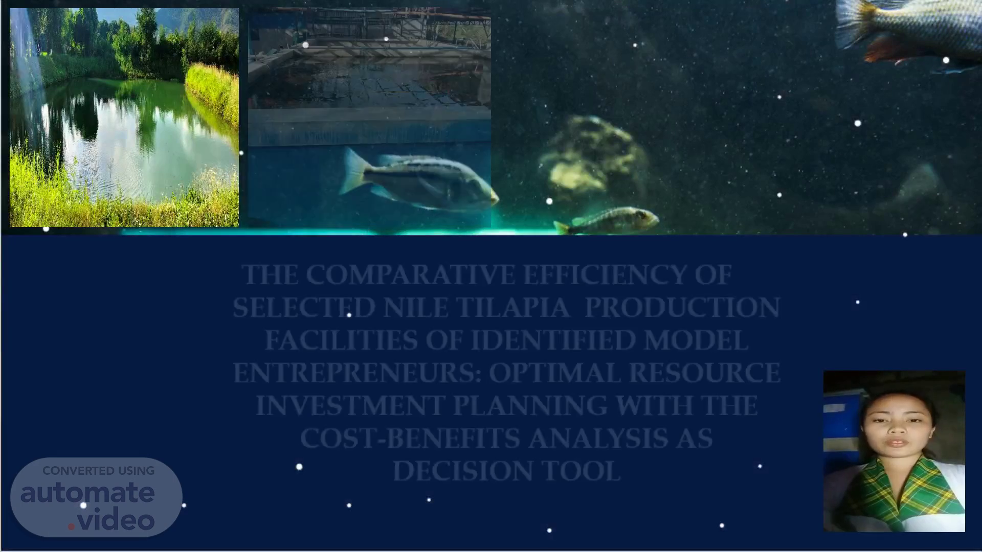 PROJECT O BJECTIVES. General Objective: This project seeks to determine the feasibility of establishing a Comparative Efficiency of Selected Nile Tilapia Production Facilities of Identified Model Entrepreneurs: Optimal Resource Investment Planning with the Cost-Benefits Analysis as Decision Tool under the auspices of the Department of Agriculture in the Municipality of Bayombong, Nueva Vizcaya..
