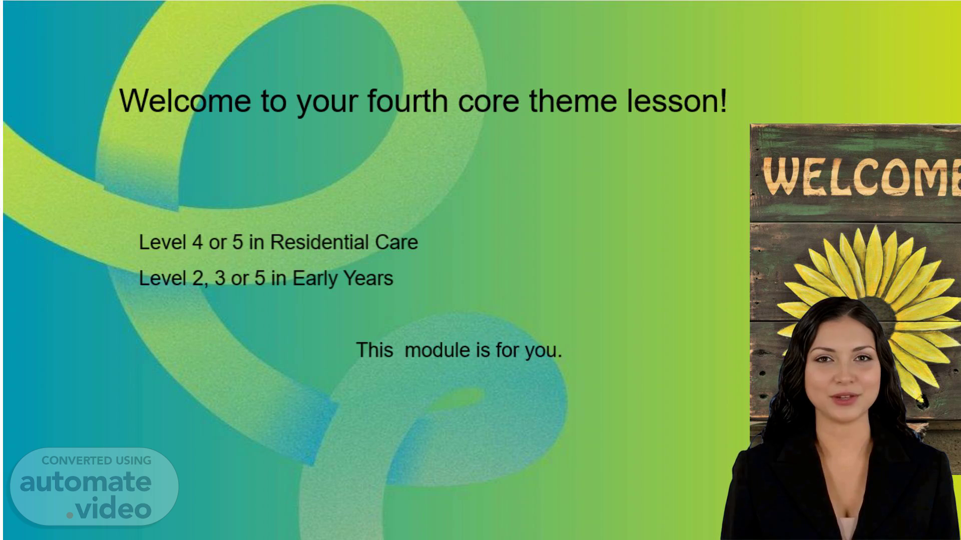 [Audio] Before we begin our fourth core theme lesson I'd like to remind you that it is important to stay in the lesson and keep your microphone off unless you are speaking. As we will be discussing sensitive topics please make sure to be mindful of confidentiality. If you don't want to be seen on camera that is fine but please feel free to make any contributions as we'd love to hear what you have to say..