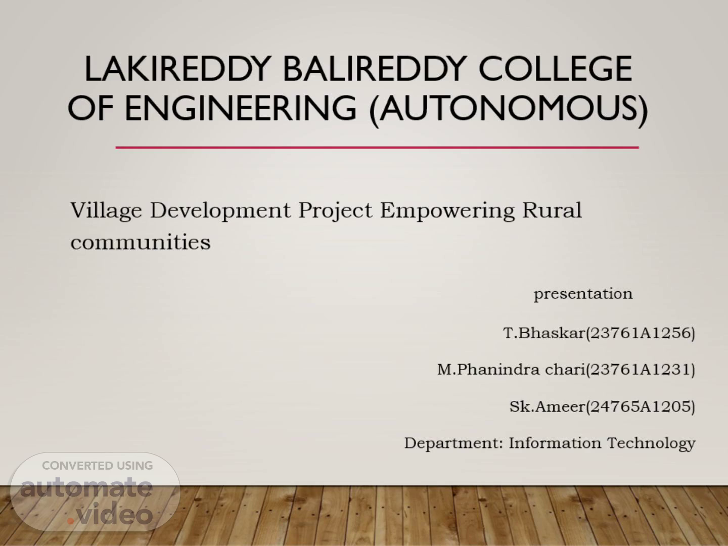 [Audio] Lakireddy Balireddy college of Engineering (autonomous) Village Development Project Empowering Rural communities presentation T.Bhaskar(23761A1256) M.Phanindra chari(23761A1231) Sk.Ameer(24765A1205) Department: Information Technology.