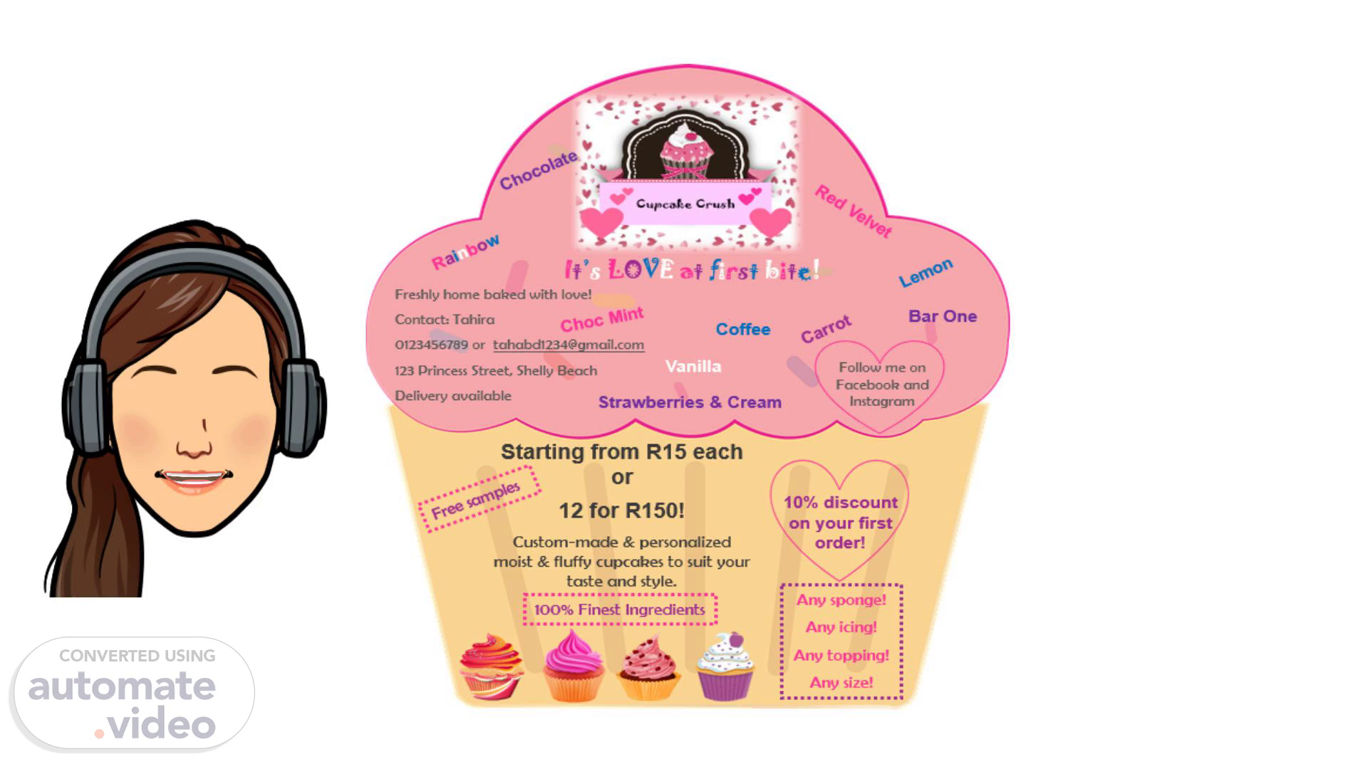 I am Tahira. 0). LOV Freshly home baked with love! Contact: Tahira cnoc Mint 0123456789 or [email protected] Coffee Vanilla 123 Princess Street, Shelly Becch Delivery available Strawberries & Cream Starting from R15 each or 12 for R150! Custom-made & personalized moist & fluffy cupcakes to suit your taste and style. : 100% Finest Ingredients Bar One Follow me on Facebook and Instagram 10% discount on your first order! Arw sponge! • Any icing! Any topping! Any size!.