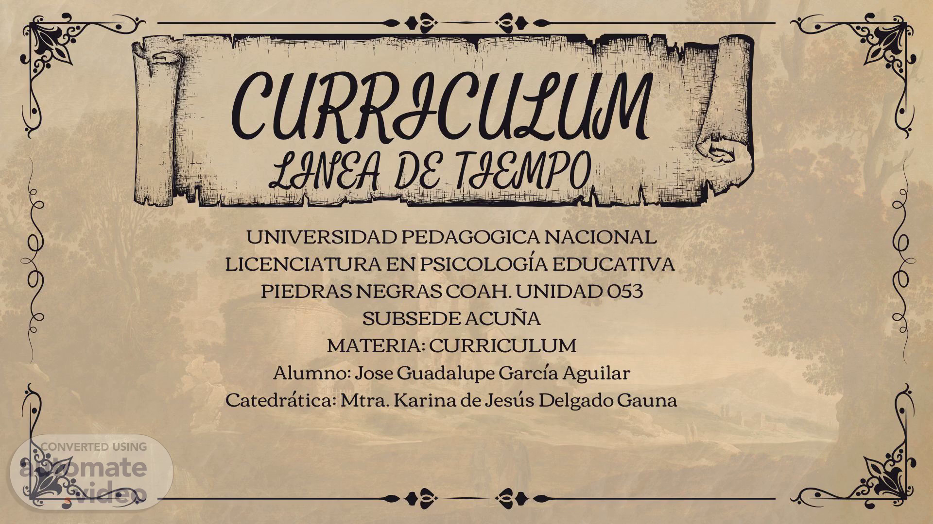 [Audio] CURRICULUM LINEA DE TIEMPO UNIVERSIDAD PEDAGOGICA NACIONAL LICENCIATURA EN PSICOLOGÍA EDUCATIVA PIEDRAS NEGRAS COAH. UNIDAD 053 SUBSEDE ACUÑA MATERIA: CURRICULUM Alumno: Jose Guadalupe García Aguilar Catedrática: Mtra. Karina de Jesús Delgado Gauna.