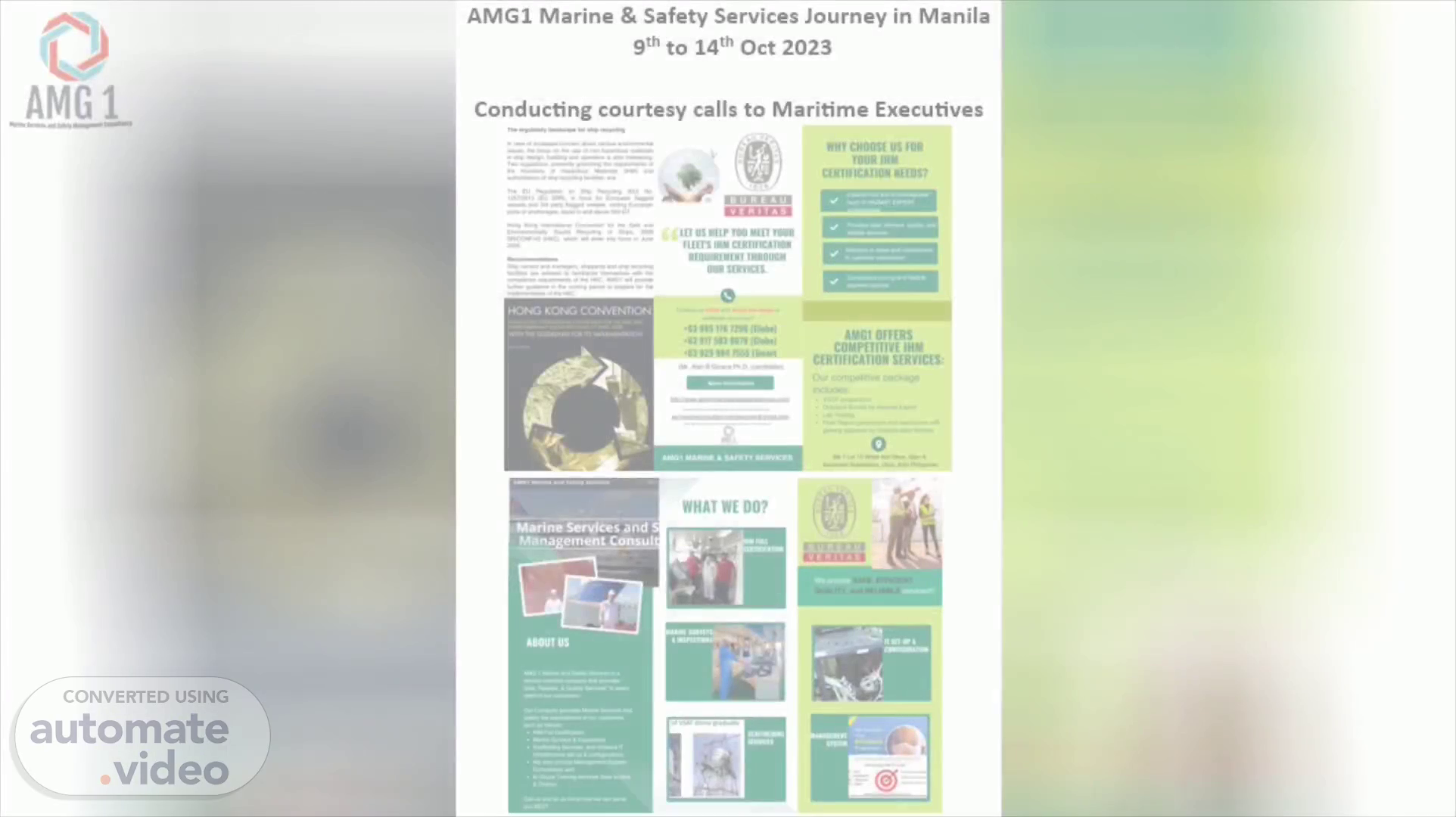 AMGI Marine & Safety Services Journey in Manila 9th to 14th Oct 2023 Conducting courtesy calls to Maritime Executives CHM)StUS foe YOUR 18M ctRTtncanox EttDS? KONG CONVENO•ON Marine Services and Mana ement uS nurs rnoe AUGI OFFERS COMPETITIVE IHM CERTIFICATION SERVICES: WHAT WE DO? o 1.