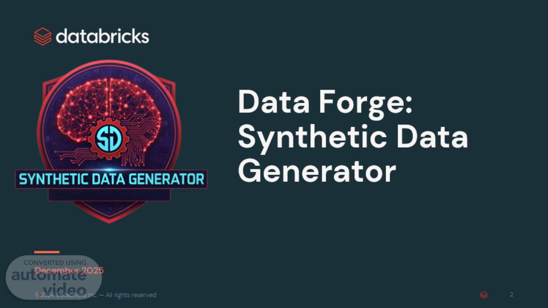 [Audio] Hi everyone! I'm presenting Data Forge — an AI-powered synthetic data generator for Databricks. Let me show you how we're generating test data using just natural language.