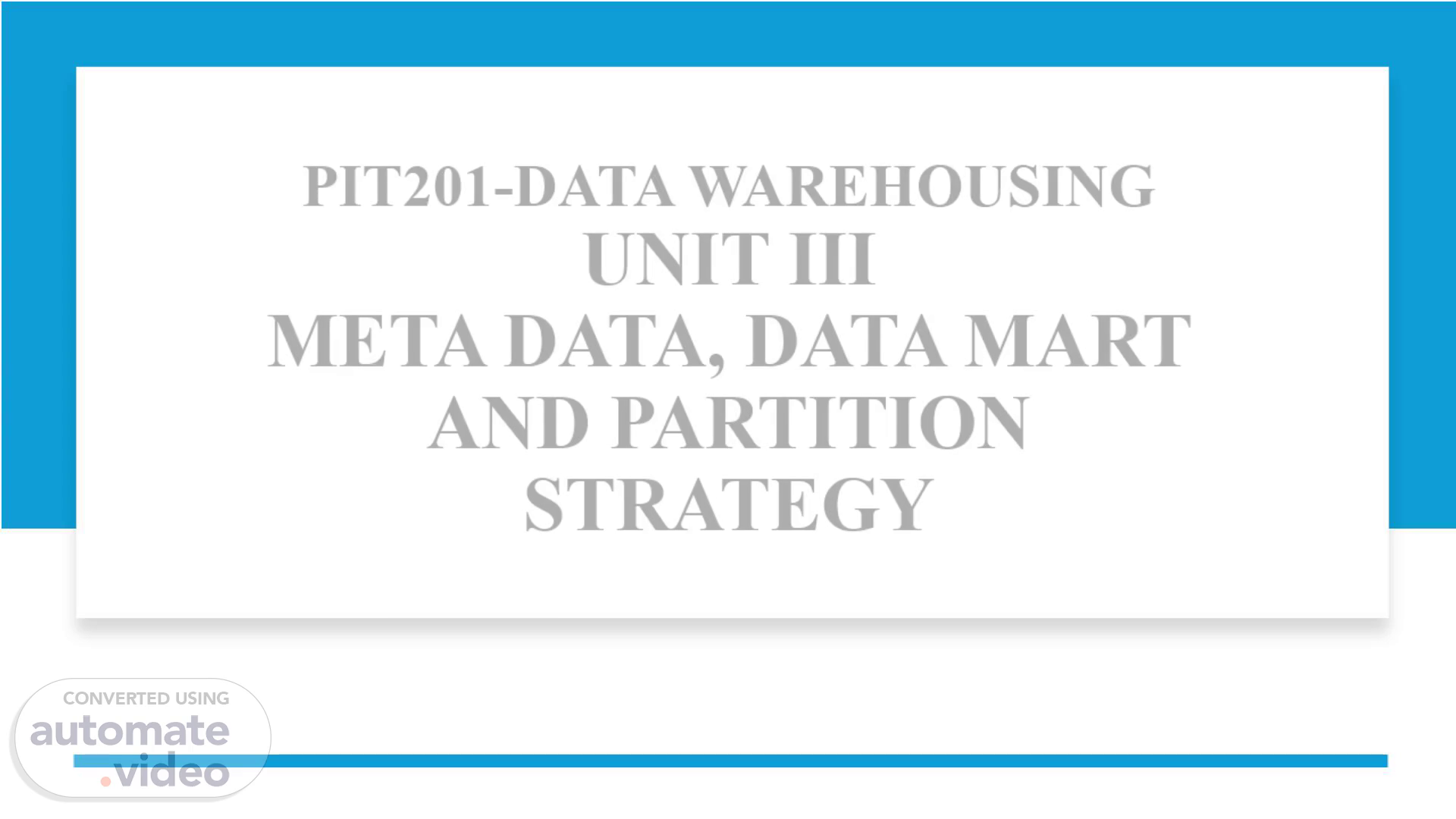 [Audio] PIT201-DATA WAREHOUSING UNIT III META DATA, DATA MART AND PARTITION STRATEGY.