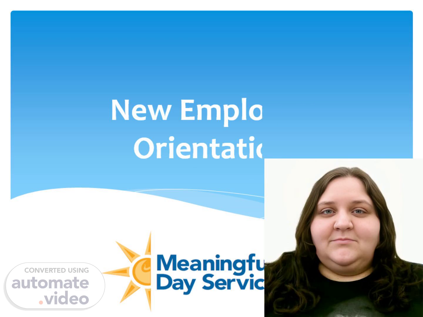 [Audio] My name is Cassandra and I am the HR assistant here. I'm giving a quick overview of what the orientation will involve. We'll go over the specifics of your position within the company, ask about any previous experience with this type of work and discuss your idea of a meaningful day. Let's get to know each other and get started!.