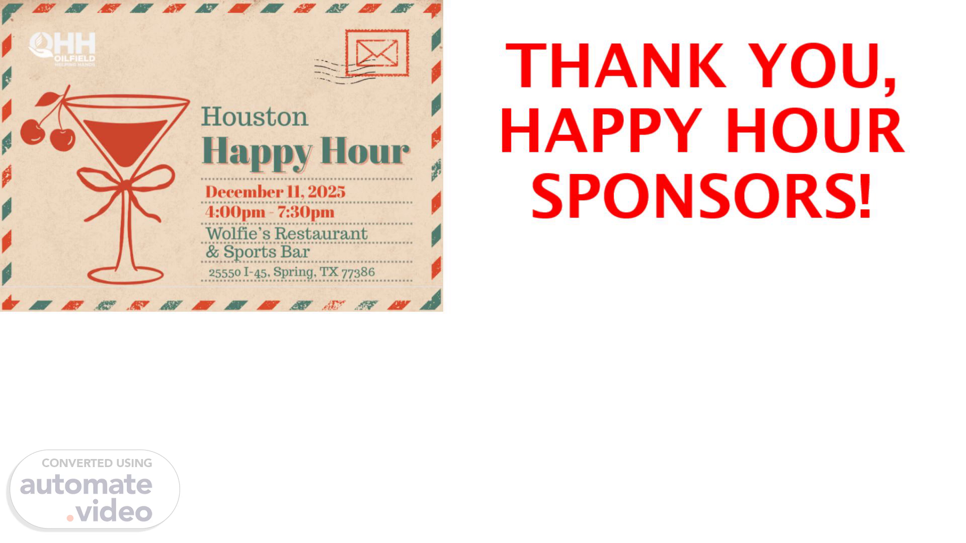 THANK YOU, HAPPY HOUR SPONSORS!. We appreciate you..