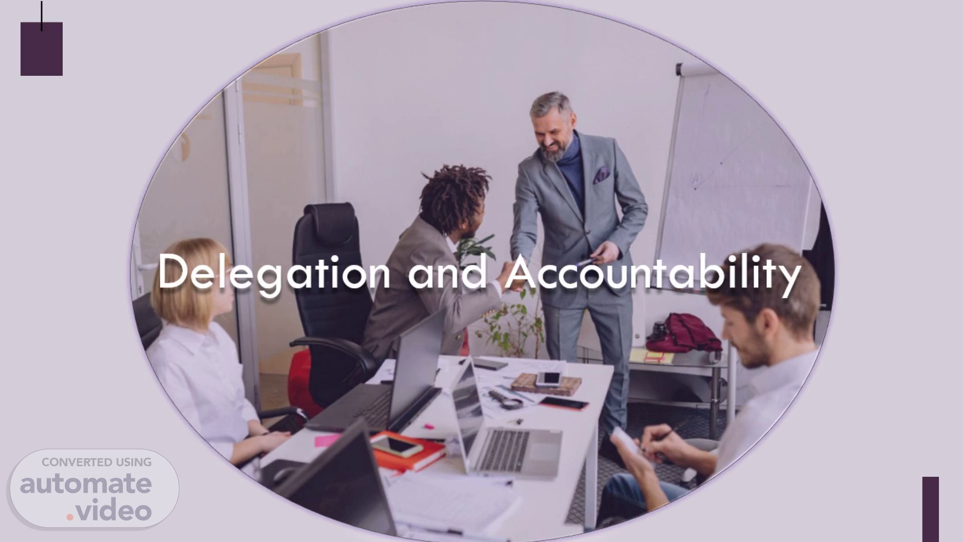[Audio] Future Trends in Delegation and Accountability Remote Oversight Implementing virtual management tools enables leaders to delegate tasks effectively while maintaining oversight, ensuring accountability through real-time progress tracking and communication. Empower Employee in Decision-making Encouraging team members to make decisions fosters a culture of trust and accountability, leading to increased motivation and job satisfaction while improving overall productivity. Performance Analytics Utilizing data analytics allows organizations to assess team performance, enabling informed decisions about delegation, and fostering accountability through clear performance metrics..
