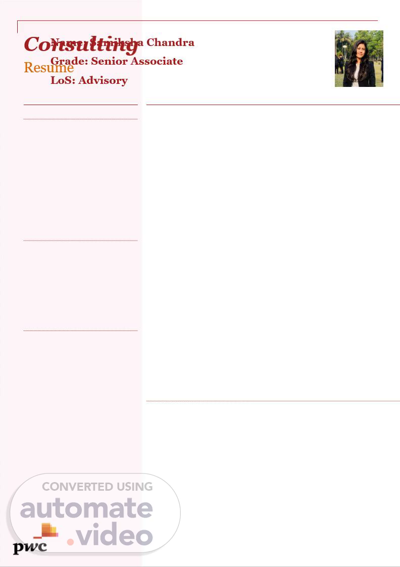[Audio] Consulting Name: Samiksha Chandra Grade: Senior Associate LoS: Advisory Resume Consulting Resume , Name Samiksha Chandra grade abc.
