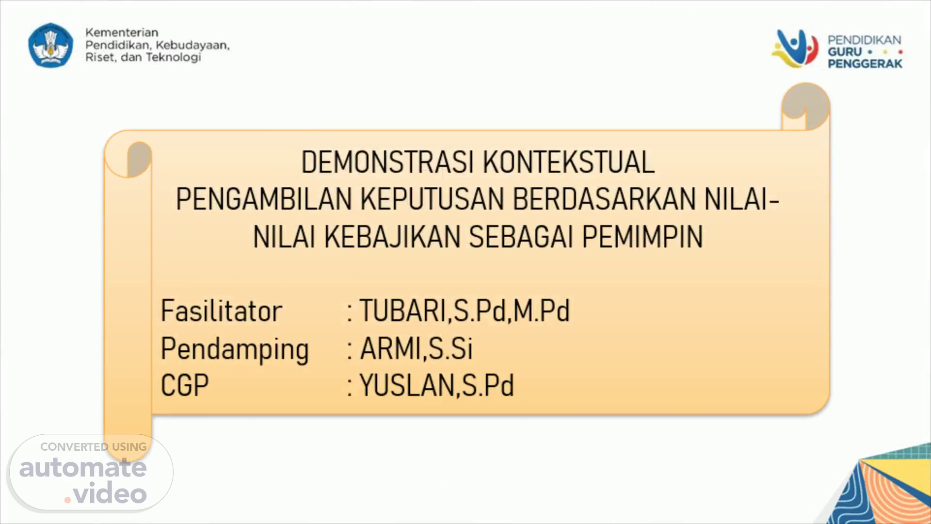 . DEMONSTRASI KONTEKSTUAL PENGAMBILAN KEPUTUSAN BERDASARKAN NILAI-NILAI KEBAJIKAN SEBAGAI PEMIMPIN Fasilitator : TUBARI,S.Pd,M.Pd Pendamping : ARMI,S.Si CGP : YUSLAN,S.Pd.