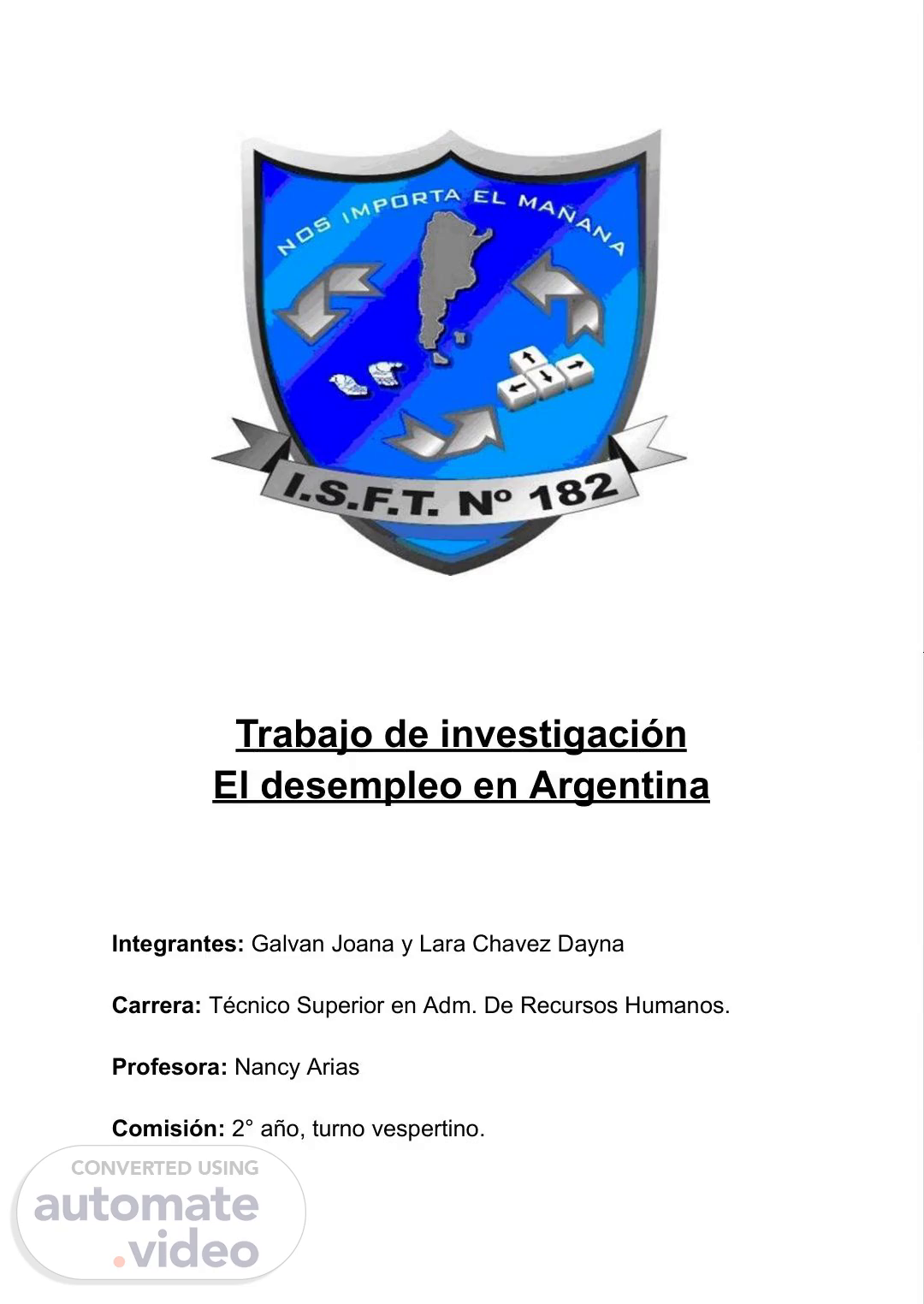 [Audio] Trabajo de investigación El desempleo en Argentina Integrantes: Galvan Joana y Lara Chavez Dayna Carrera: Técnico Superior en Adm. De Recursos Humanos. Profesora: Nancy Arias Comisión: 2° año, turno vespertino..