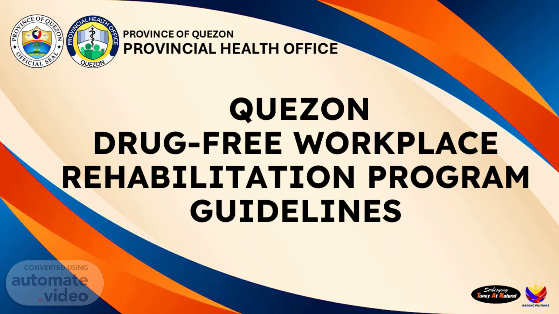 Purpose and Objectives. These guidelines provide a systematic and humane approach to managing substance use issues among employees of the Provincial Government of Quezon. The objectives are: Ensure a drug-free government workplace while upholding employee dignity and rights. Identify employees at risk or affected by substance use through mandatory drug testing and screening. Provide appropriate interventions, treatment, and rehabilitation through a Community-Based Drug Rehabilitation Program (CBDRP). Support reintegration through structured aftercare and relapse prevention programs..