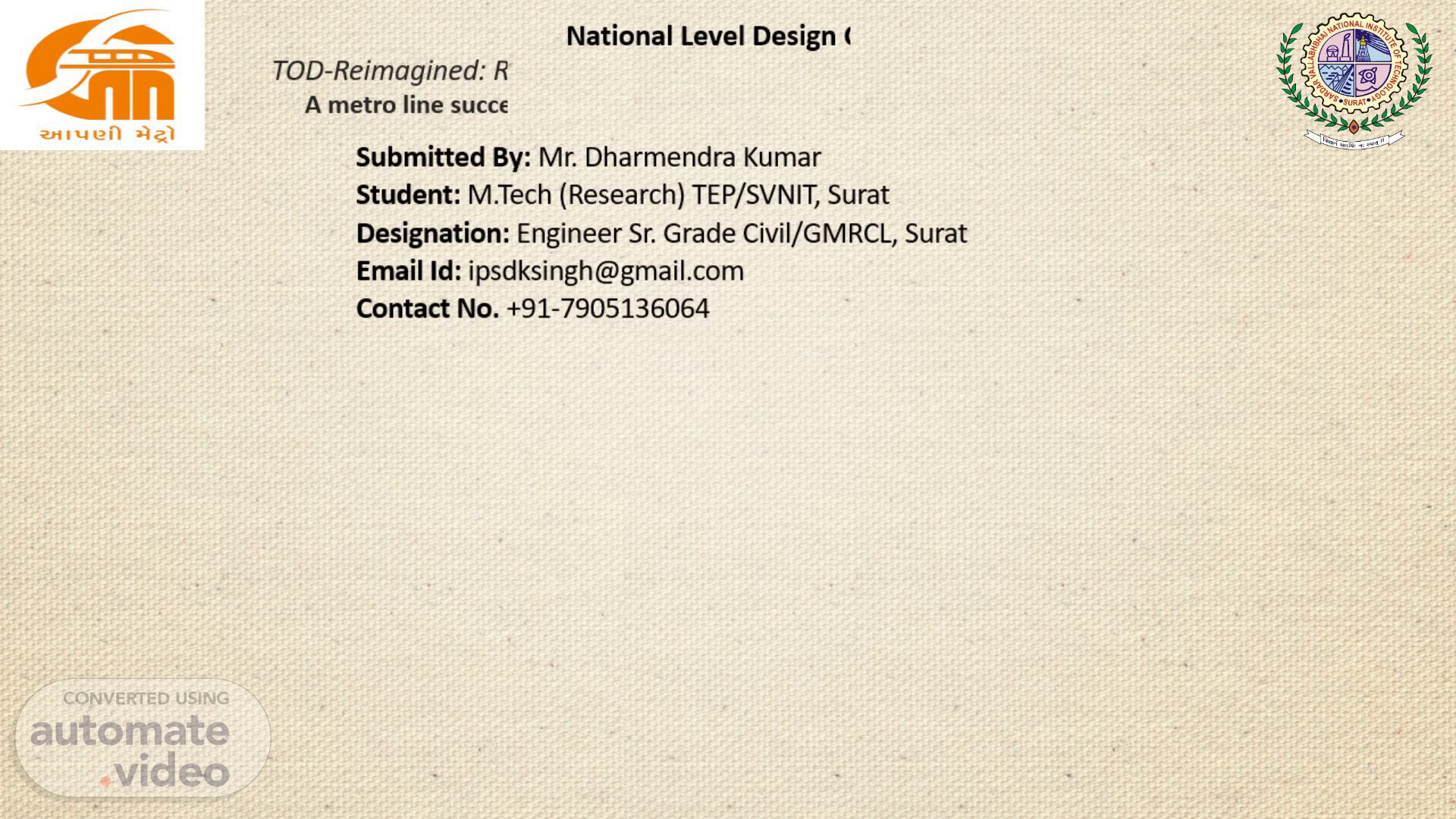 4.. “TOD-Reimagined: Reimagining Sustainable Mobility in TOD Areas of Pune”.
