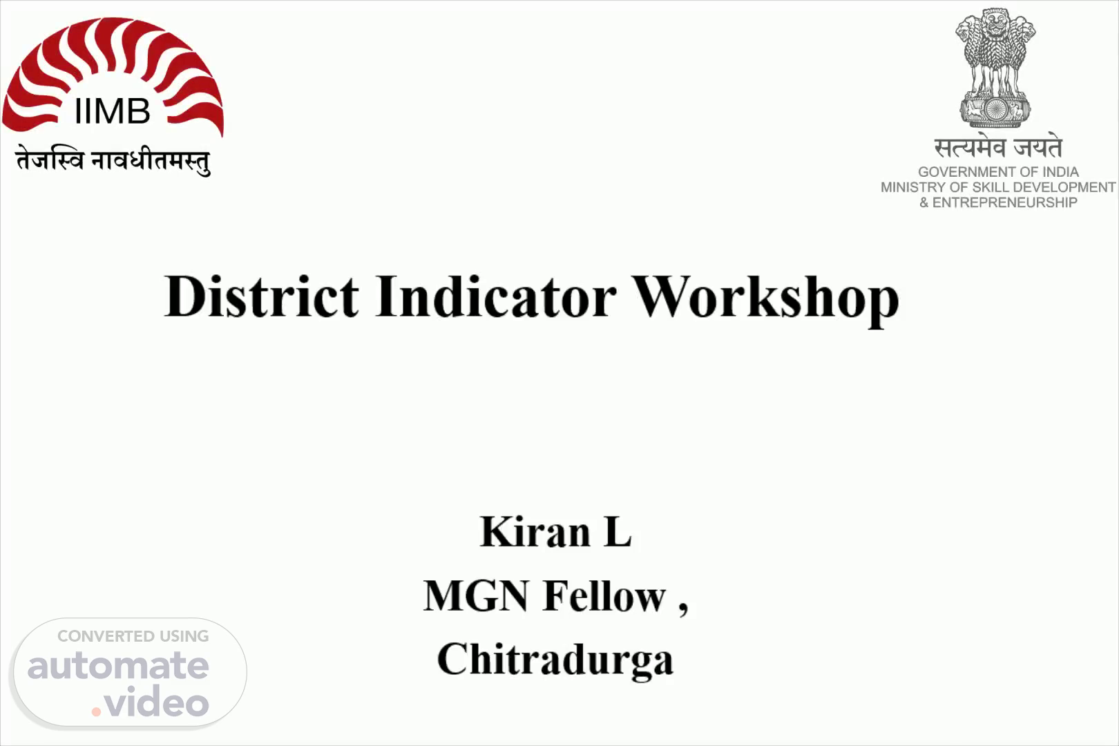 District Indicator Workshop. Kiran L MGN Fellow , Chitradurga.