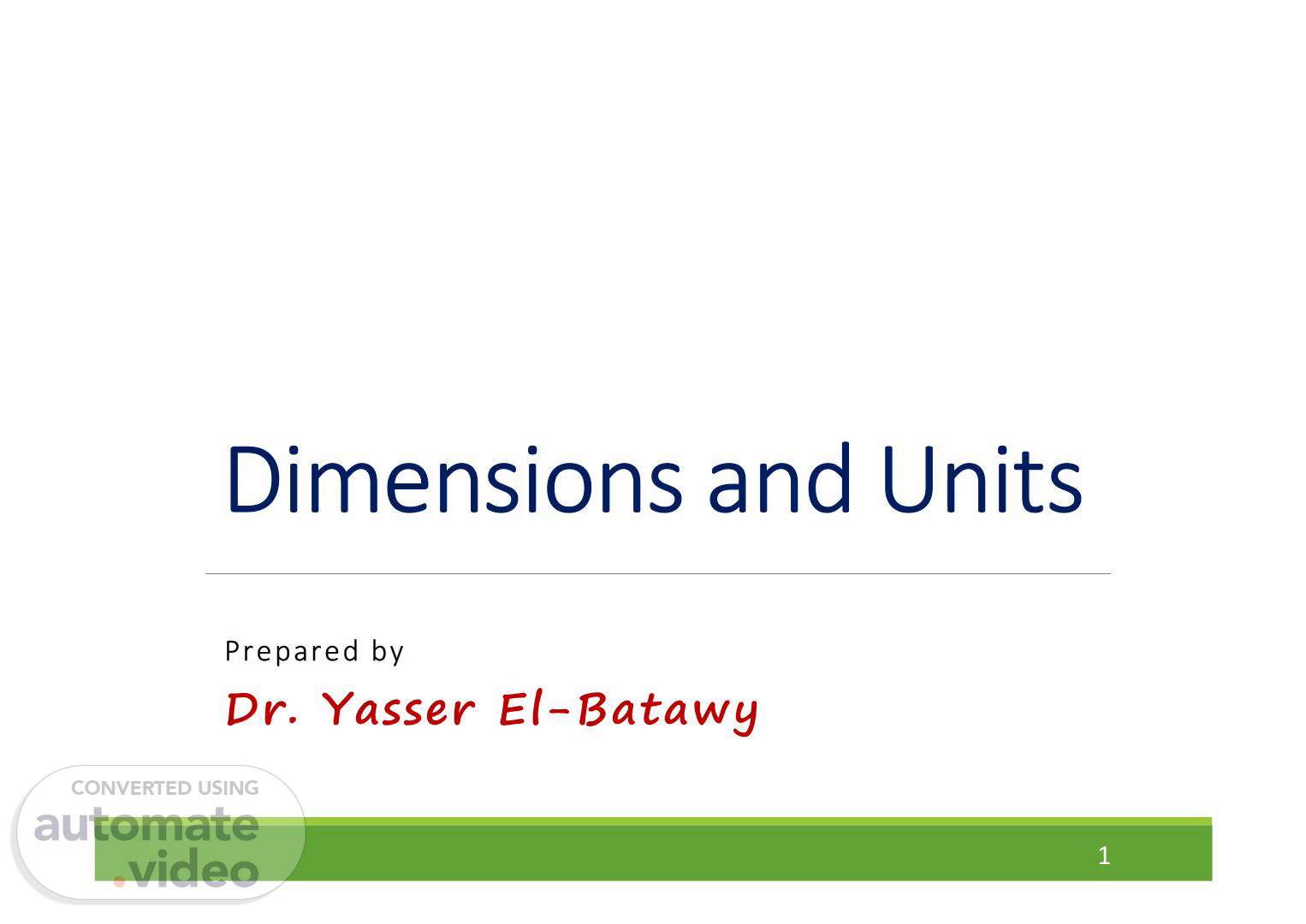 Dimensions and Units Prepared by Dr. Yasser El-Batawy 1.