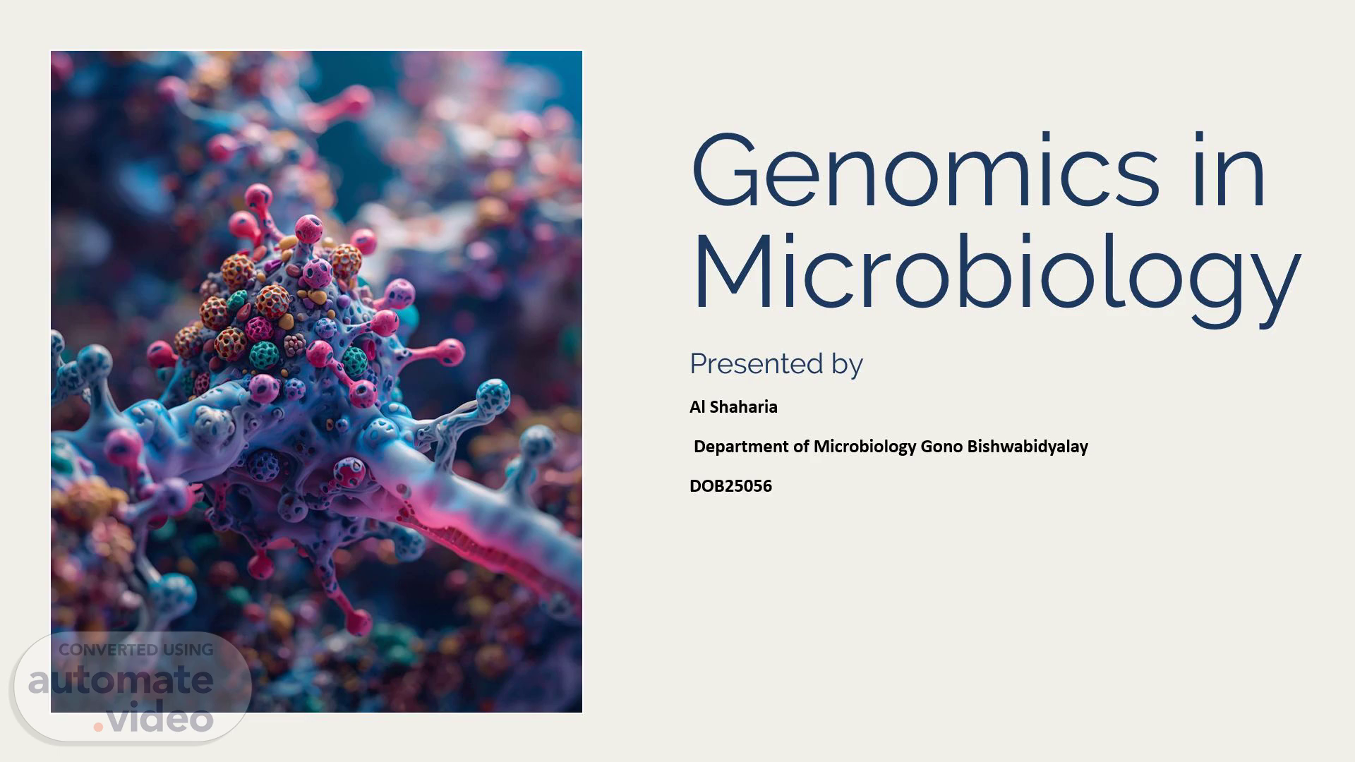 [Audio] Genomics in Microbiology Presented by Al Shaharia Department of Microbiology Gono Bishwabidyalay DOB25056.