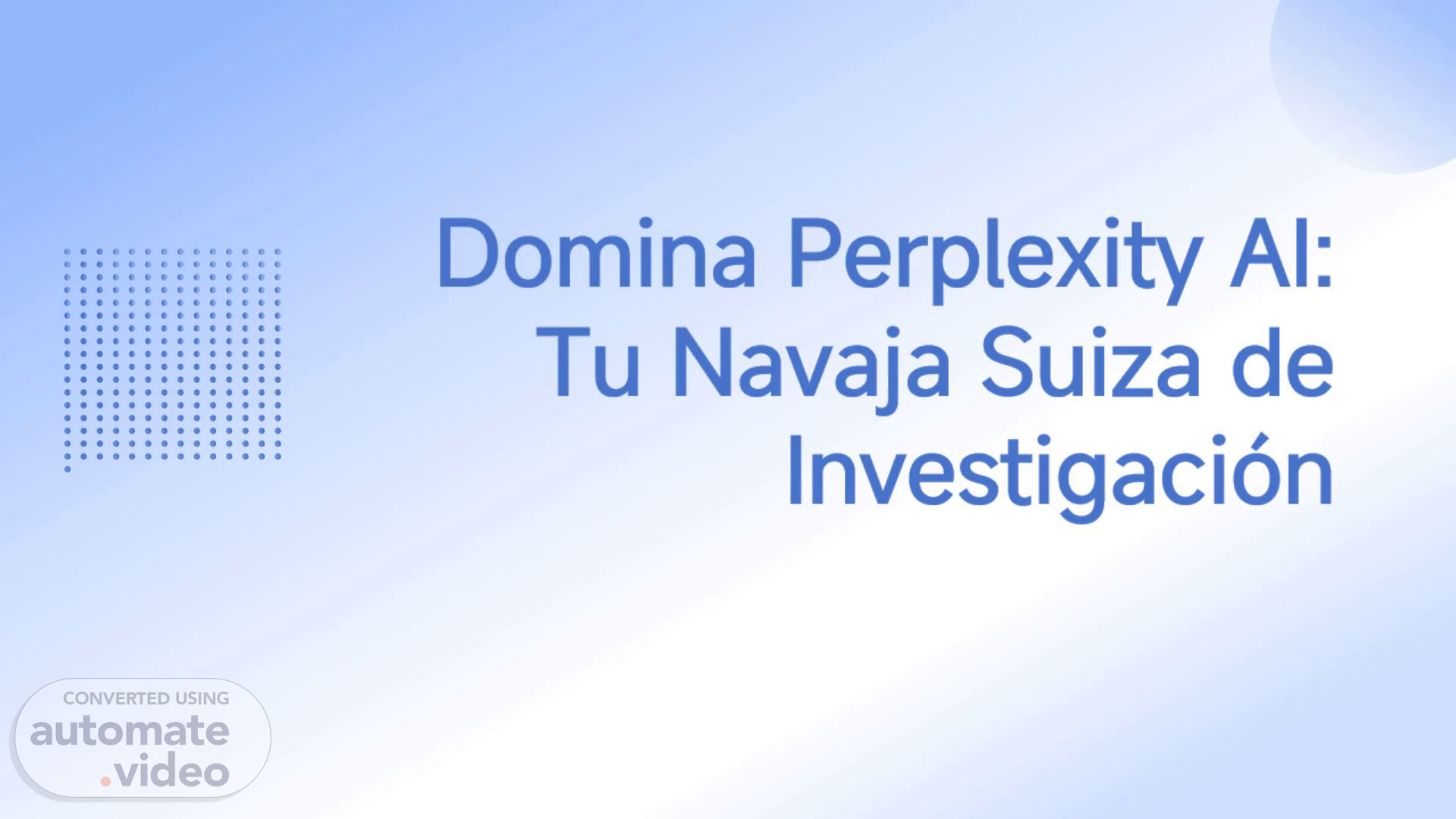Perplexity AI: Más que un Buscador. Perplexity AI fusiona la potencia de un motor de búsqueda en tiempo real con la capacidad de síntesis de un LLM, funcionando como una herramienta híbrida para descubrir, resumir y crear . Esta presentación desglosa su arquitectura, modos de búsqueda y aplicaciones prácticas para dominar la investigación digital..