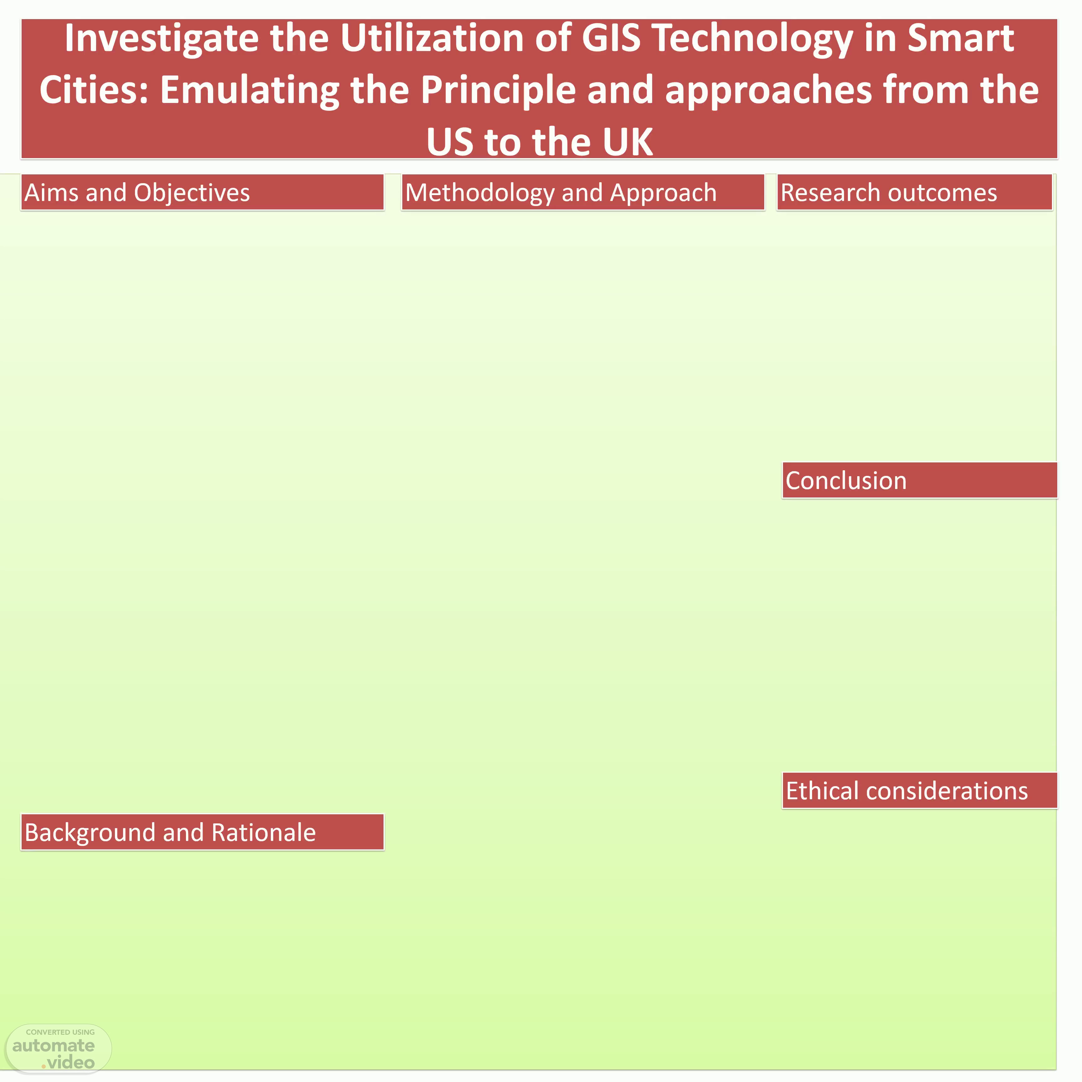 The research aims at gathering vital information on the principle and approaches to the utilization of GIS technology in the smart cities of the UK and USA. The research objectives includes,.