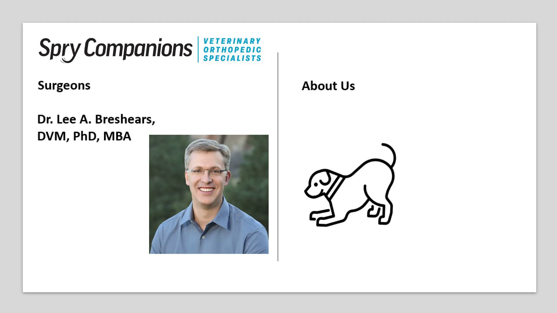 [Audio] Spry Companions surgical center is led by the extraordinary talents and care of Dr. Nate Miller and Dr. Lee Breshears…….. Dr. Breshears was born and raised in Denver, Colorado. He attended Colorado State University for his undergraduate studies and for his veterinary medical degree. He completed a general rotating small animal internship at the University of Minnesota and a surgical internship through Veterinary Specialists of Nevada. He completed his residency training at the University of Missouri-Columbia, as well as a one-year clinical instructorship that led to his board-certification by the American College of Veterinary Surgeons in 2007. During his time in Missouri, he performed research in the Comparative Orthopaedic Laboratory at the University of Missouri-Columbia. This work focused on the characterization and treatment of osteoarthritis and cranial cruciate ligament injury and he received his PhD in Comparative Orthopaedics through the Area Pathobiology Program. He taught at Massey University in Palmerston North, New Zealand in 2008 and again in 2019. While teaching overseas, he appreciated the diversity of cases including the unique orthopedic injuries sustained in New Zealand's working dogs. In part, this interest in these working dogs as well as their injuries led to Dr. Breshears becoming board-certified by the American College of Veterinary Sports Medicine & Rehabilitation. Prior to becoming a founding partner in Spry Companions, Dr. Breshears was a practicing surgeon and partner in a large specialty hospital in the Denver metro area for more than a decade. This experience led to his desire to focus on challenging cases in orthopedics, minimally invasive fracture repair, advanced arthroscopy and angular limb deformities. Dr. Breshears holds an executive MBA from the Daniels College of Business at the University of Denver and has a special understanding of how business practices, for better or worse, influence the efficiency and delivery of medical care. Dr. Breshears takes pride in patient-focused care which includes walking clients through all treatment possibilities for their pets, surgical and non-surgical alike..