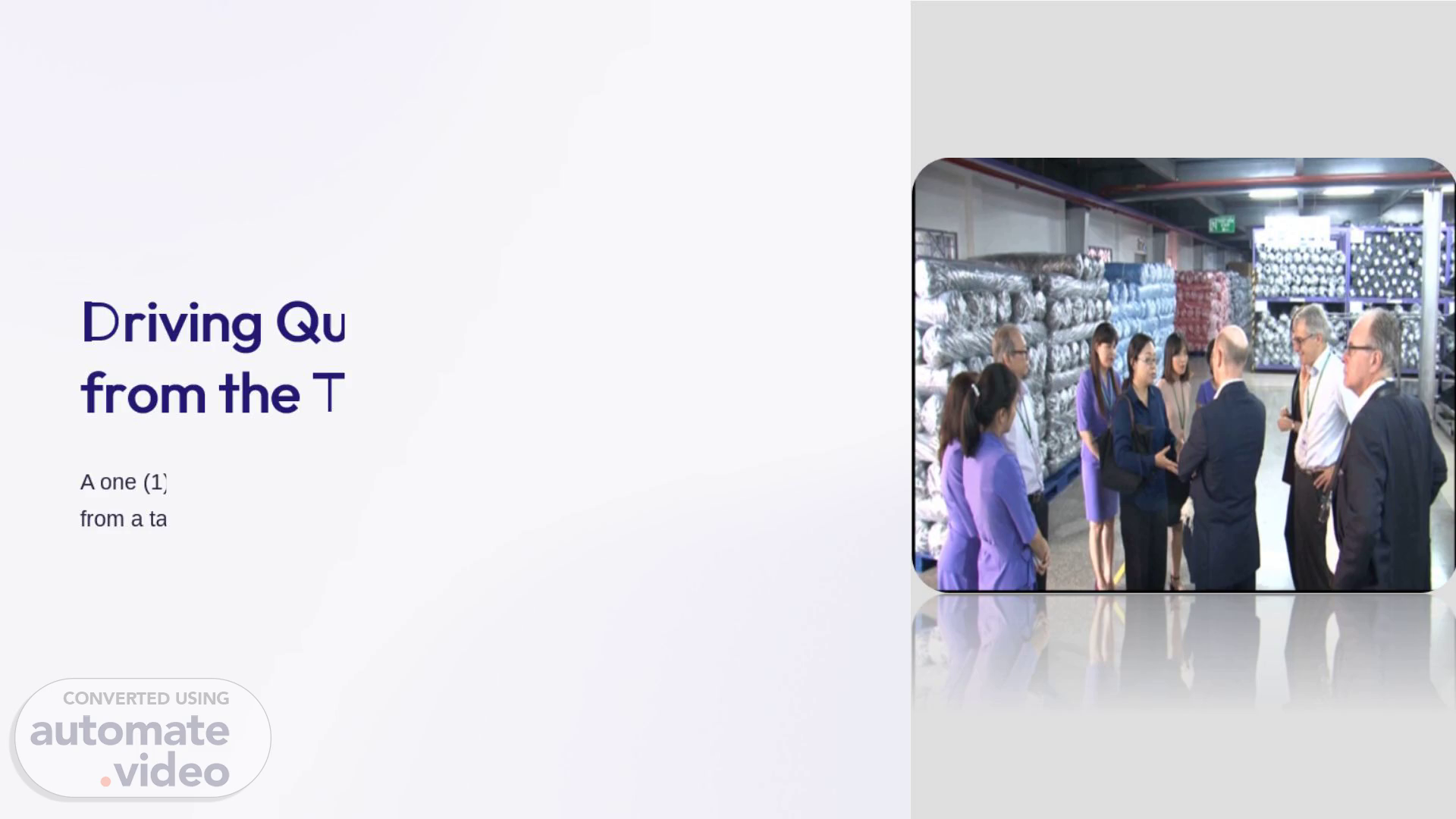 Driving Quality Excellence from the Top. A one (1) hour workshop for senior leaders on transforming quality control from a task into a core leadership responsibility..