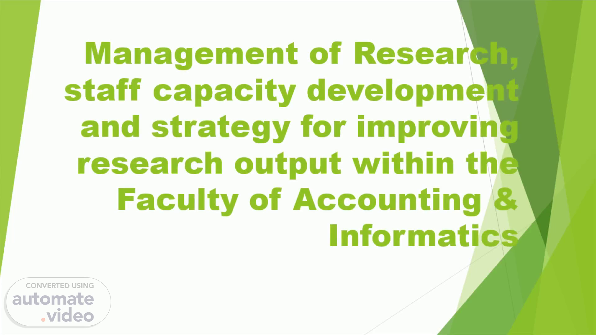 Management of Research, staff capacity development and strategy for improving research output within the Faculty of Accounting & Informatics