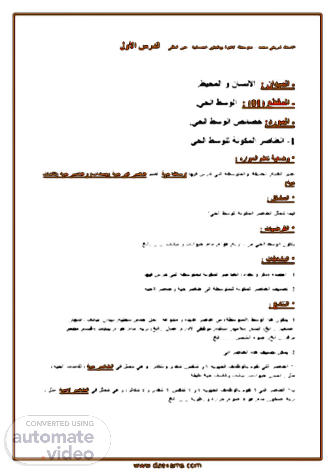 ذًحي ٙفٚشش راتصلأا– حَٛاضحنا ٍٛهدفٕت جٕخلاا حطصٕتي–ٗهفذنا ٍٛػ لٔلأا سسذنا - ٌاذًٛنا : ظٛحًنا ٔ ٌاضَلاا. - غطقًنا) 10: ( ٙحنا ظصٕنا. - دسًٕنا: .ٙحنا ظصٕنا صئاصخ 1- ٙحنا ظصٕهن حَٕكًنا شصاُؼنا * دسإًنا ىهؼت حٛؼضٔ : حتاغنا شثتؼت, نا حطصٕتًنأ حقٚذحنا آٛف سسذت ٙتحٛح اطاصٔأ, ىضت حٛح شٛغ شصاُػ)خاداًخ( حٛح شصاُػٔ )خاُئاك حٛح(. * مكشًنا : مثًتت اًٛف؟ٙحنا ظصٕهن حَٕكًنا شصاُؼنا * خاٛضشفنا : ٍي ٙحنا ظصٕنا ٌٕكتٚ : حتشت, ءإْ, ءاي, .خنا..........خاتاثَ ٔ خاَإٛح * خاطاشُنا : 0- حا ءاص)داذؼت ٔ شكر( ٙتنا حطصٕتًهن حَٕكًنا شص اُؼناٛف سسذت.آ 2- .حٛحلا شصاُػٔ حٛح شصاُػ ٗنا حطصٕتًهن حَٕكًنا شصاُؼنا فُٛصت حئاتُنا * : 0- ظصٕنا ازْ ٌٕكتٚ)حطصٕتًنا( حػُٕتي ٔ جذٚذػ شصاُػ ٍي : مًَ, واًح, حٛهحص, ٌاذٚد, خاتاثَ)سادشأ, خنا.....باشػأ( ٌاضَا)زٛيلات, جزتاصا, جسادلاا ٙفظٕي, لاًػخنا....( حتشت, ءاي, ءإْ, خاٚاُت)واضقأ, ىؼطي, خنا.....ذقشي,( شًشنا ءٕض…….خنا. 2- ٗنا شصاُؼنا ِزْ فُٛصت ٍكًٚ : وٕقت ٙتنا شصاُؼنا *أ حٕٚٛحنا فئاظٕنات )٘أ شفُتت, ٖزغتت ٔشثاكتت( ٙف مثًتت ْٙ ٔحٛح شصاُؼنا )حٛحنا خاُئاكنا ( مثي : ٌاضَا, خاَإٛح, خاتاثَ ٔحقٛقد حٛح خاُئاك. حٕٚٛحنا فئاظٕنات وٕقت لا ٙتنا شصاُؼنا *ب)شفُتت لا ٘أ, شثاكتت لا ٔ ٖزغتت لا( ٙف مثًتت ْٙ ٔ شصاُؼنالاحٛح مثي : حتشت, سٕخص, ءاي, ءإْ, ءٕض, .........حتٕطس ٔ جساشحخنا. www.dzexams.com.