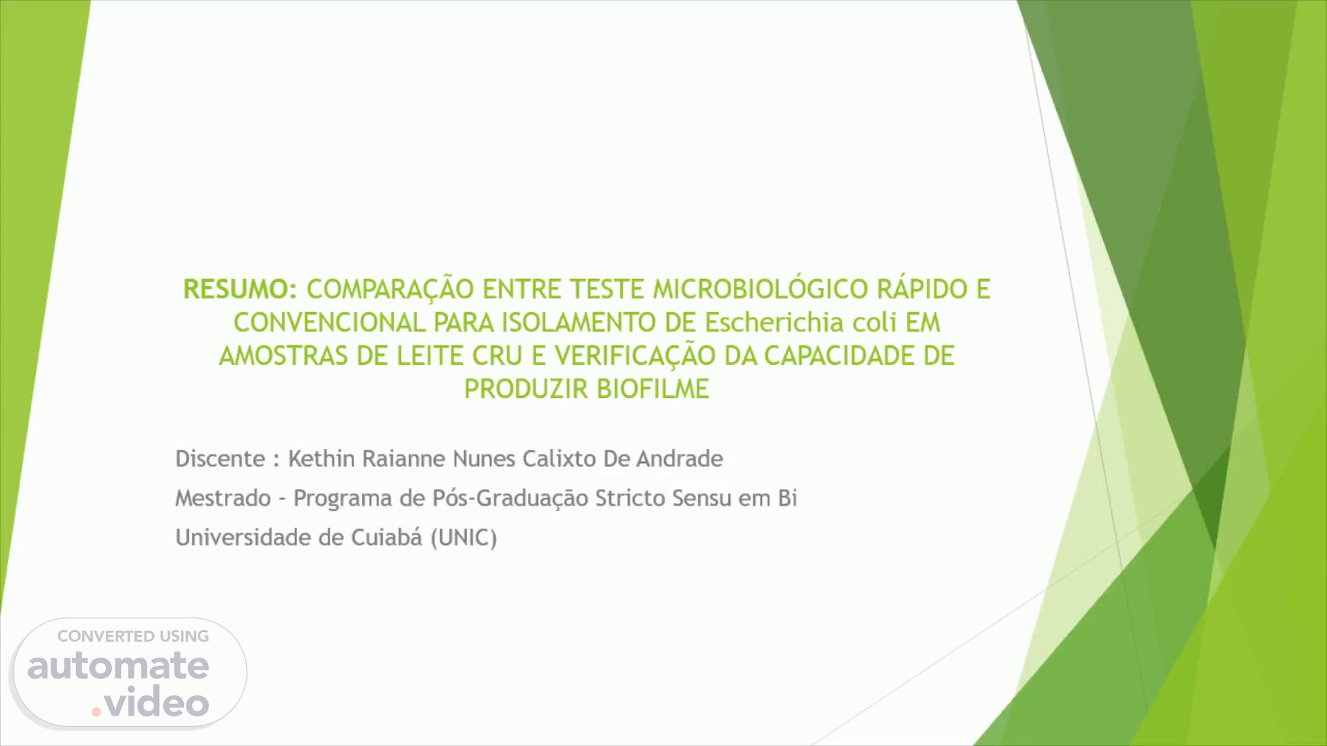 RESUMO: COMPARAÇÃO ENTRE TESTE MICROBIOLÓGICO RÁPIDO E CONVENCIONAL PARA ISOLAMENTO DE Escherichia coli EM AMOSTRAS DE LEITE CRU E VERIFICAÇÃO DA CAPACIDADE DE PRODUZIR BIOFILME