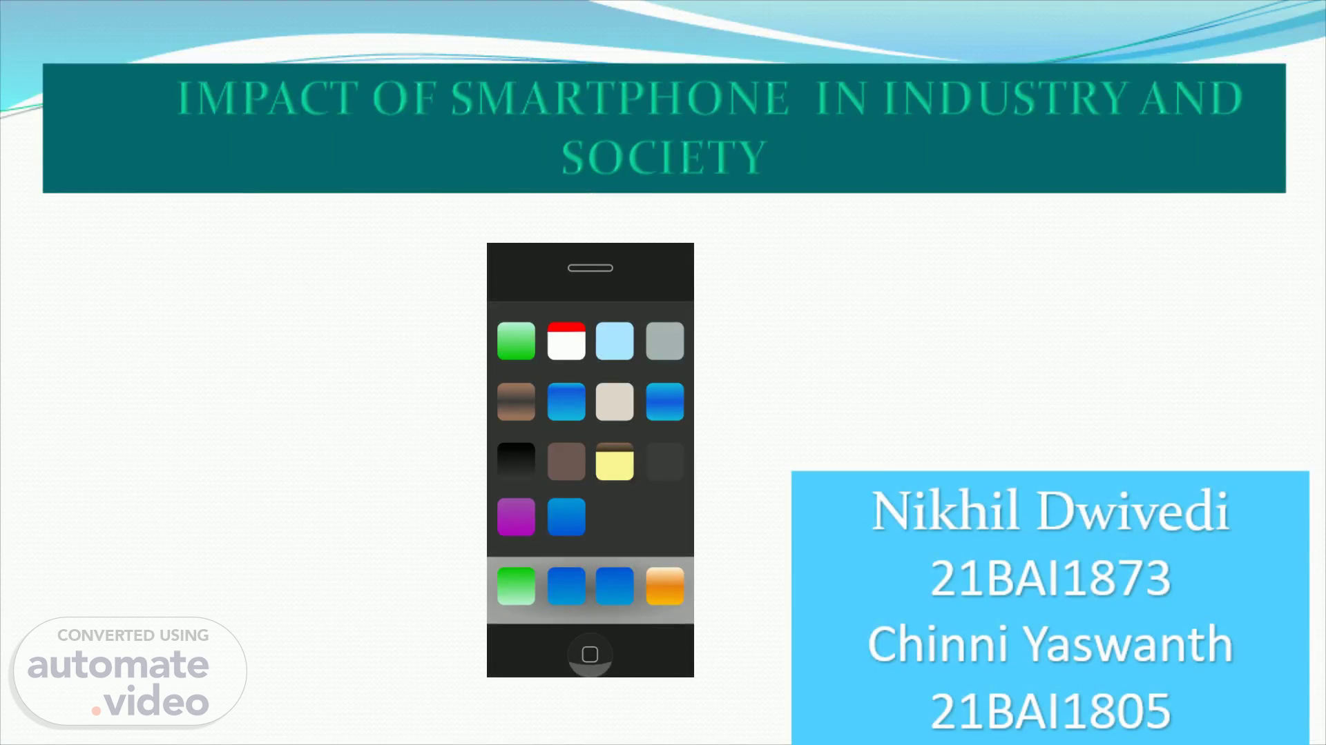 IMPACT OF SMARTPHONE IN INDUSTRY AND SOCIETY. Nikhil D wivedi 21BAI1873 Chinni Yaswanth 21BAI1805.