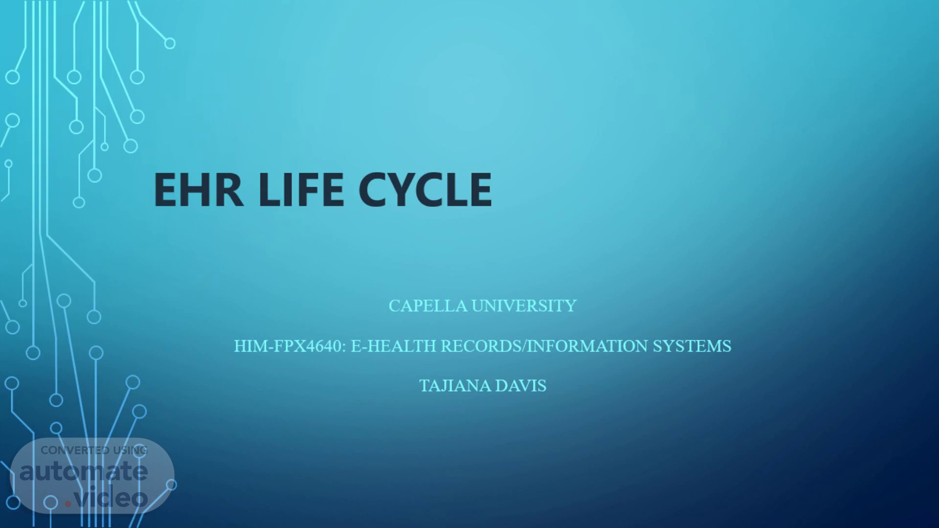 [Audio] EHR Life Cycle Capella University HIM-FPX4640: E-Health Records/Information Systems Tajiana Davis.