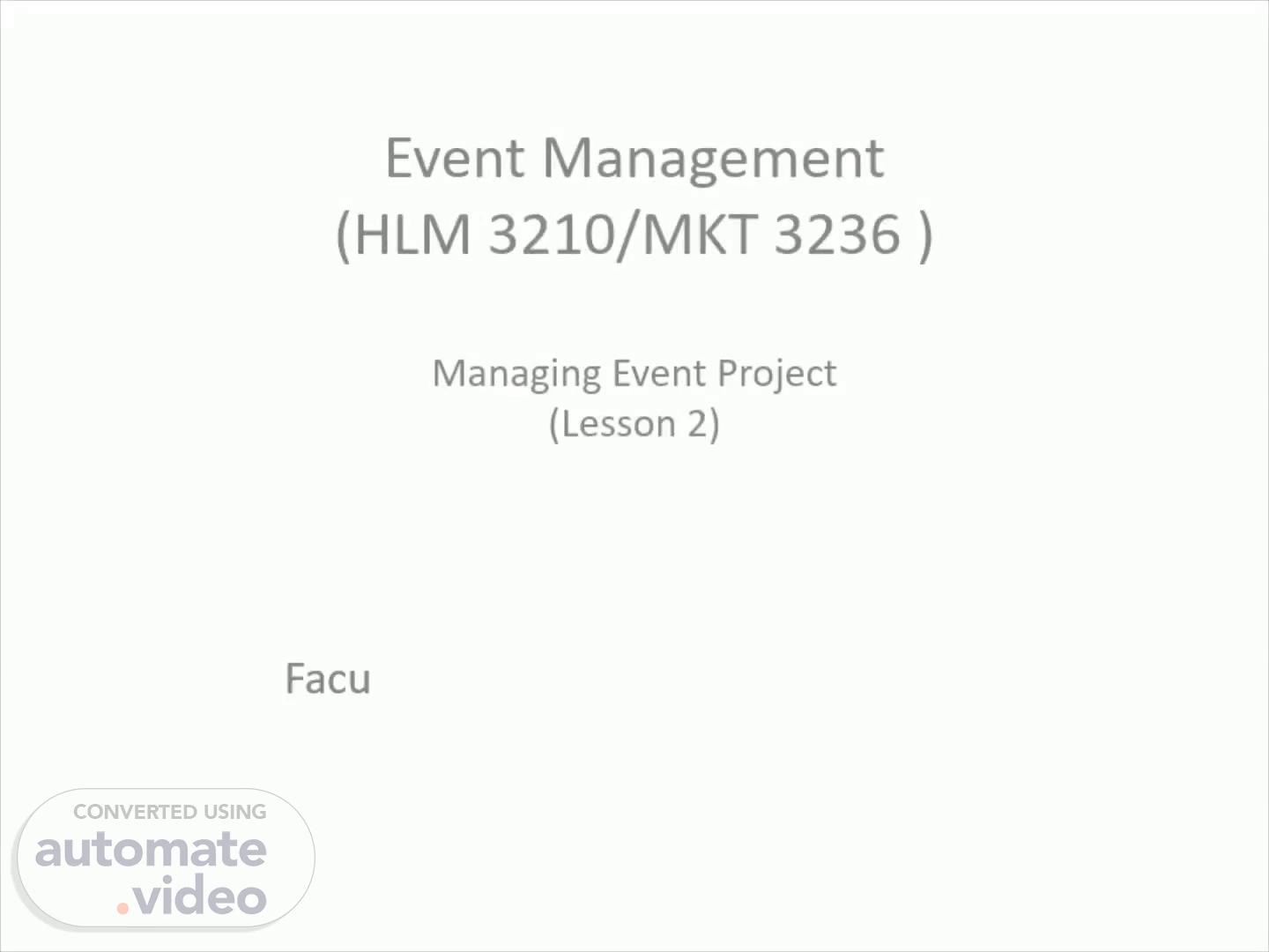 Event Management (HLM 3210/MKT 3236 ) Managing Event Project (Lesson 2).