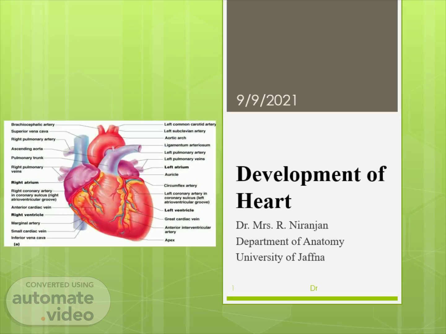 Development of Heart. Dr. Mrs. R. Niranjan Department of Anatomy University of Jaffna.