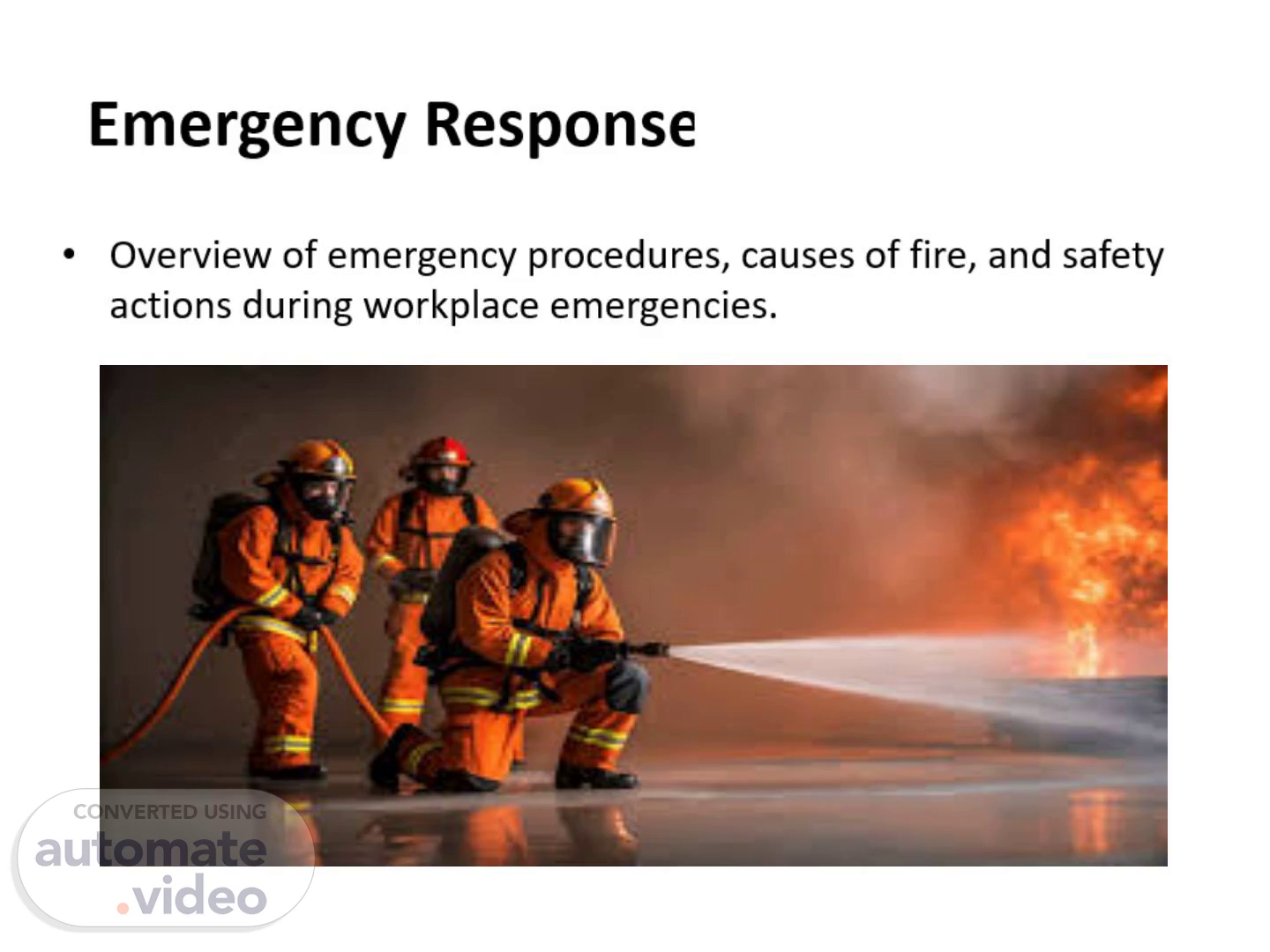 Emergency Response Plan During Fire. Overview of emergency procedures, causes of fire, and safety actions during workplace emergencies..