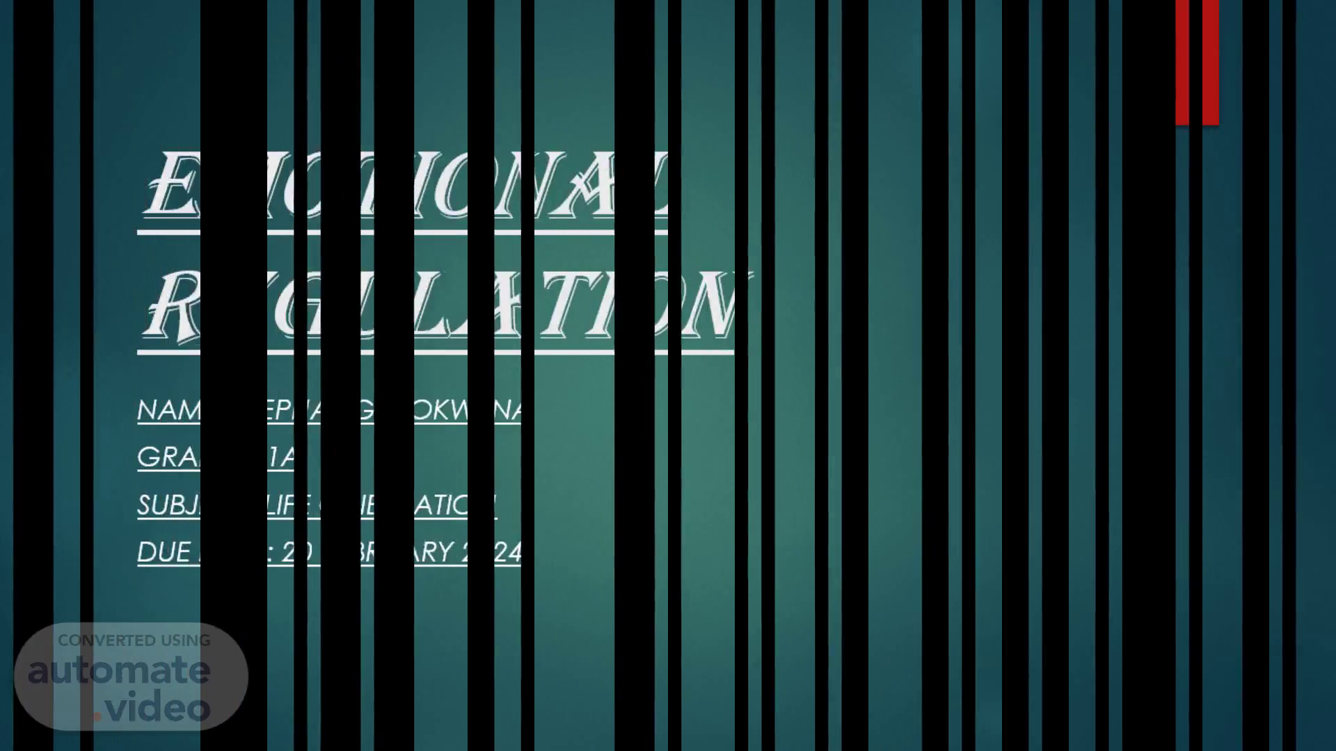 [Audio] What is Emotional Regulation? Emotion regulation is the ability to manage one's own emotional state. It could include behaviours like reconsidering a difficult situation to minimize anger or anxiety, concealing obvious evidence of sadness or fear, or focusing on reasons to be cheerful or calm..