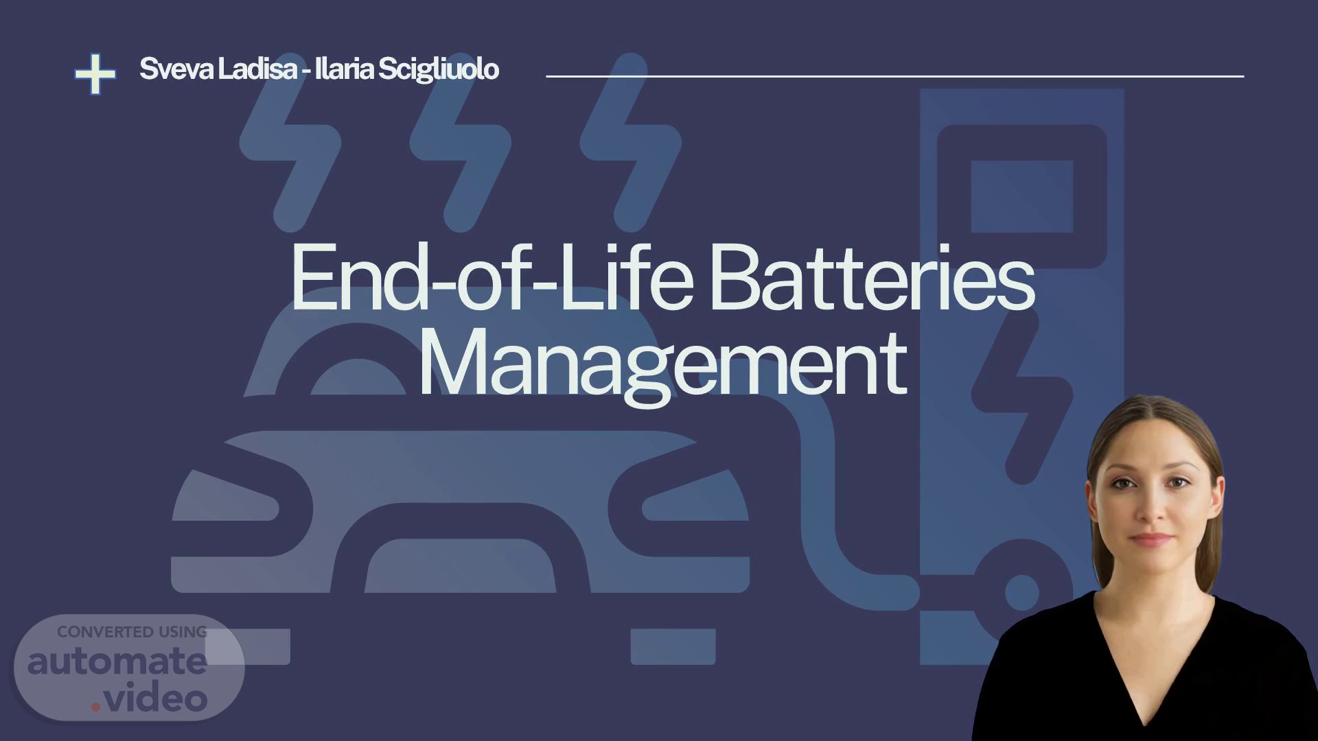 [Virtual Presenter] Good morning, everyone. Today we are going to discuss the important topic of End-of-Life Batteries Management, for both storage and Electric Vehicles. In this presentation, we will analyze the current situation of the market, the composition of lithium-based batteries, the different types of batteries available, and the EU legislation targets related to them. Finally, we will present the Battery Passport..