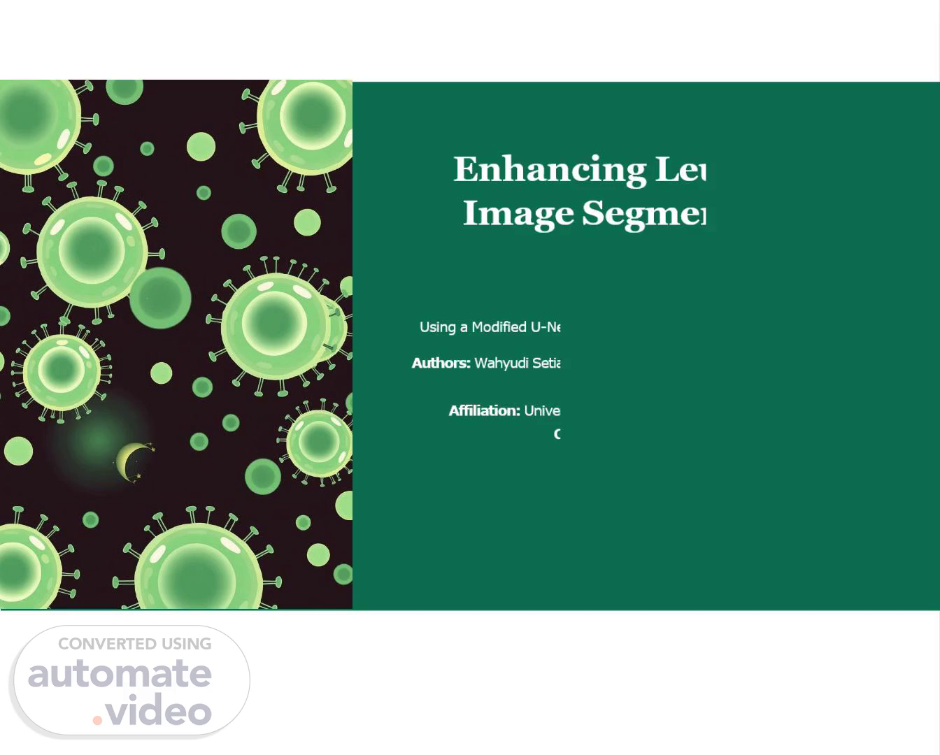 Enhancing Leukocyte Image Segmentation. Using a Modified U-Net Architecture with Spatial Attention Mechanism Authors: Wahyudi Setiawan, Daulah Darien, Rosida Vivin Nahari, Alfonsus Junanto Endarta Affiliation: University of Trunojoyo Madura, Nemosys Co., Ltd. Conference: ICCGANT 2025.