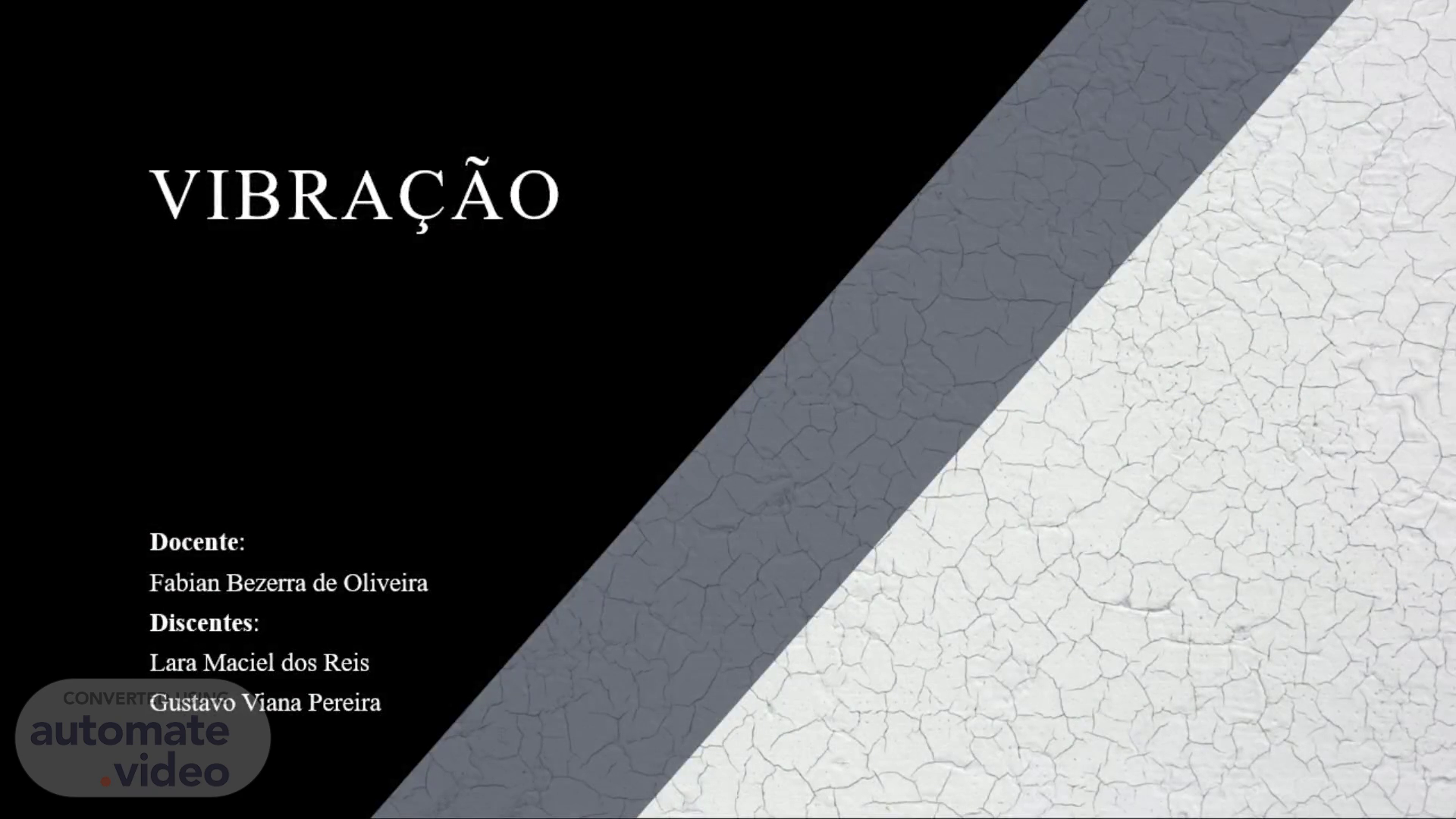 VibraÇão. Docente : Fabian Bezerra de Oliveira Discentes : Lara Maciel dos Reis Gustavo Viana Pereira.