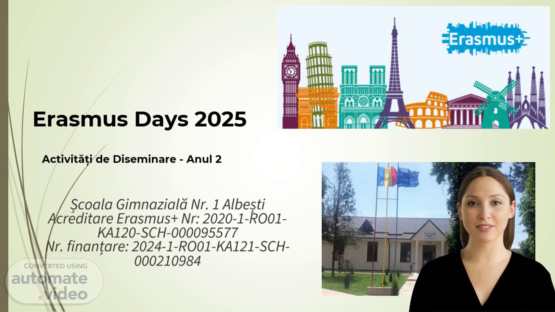 [Virtual Presenter] Erasmus Days 2025 Activități de Diseminare Anul 2 Programul Erasmus plus Consilium Școala Gimnazială Nr. 1 Albești Acreditare Erasmus plus Nr: 2020-1-RO01-KA120-SCH-000095577 Nr. finanțare: 2024-1-RO01-KA121-SCH-000210984.