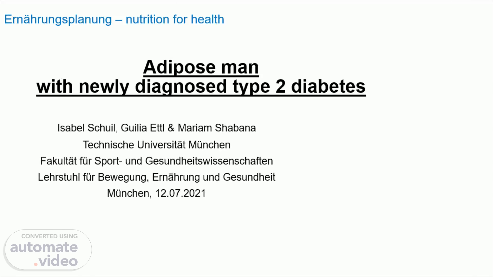 Adipose man with newly diagnosed type 2 diabetes