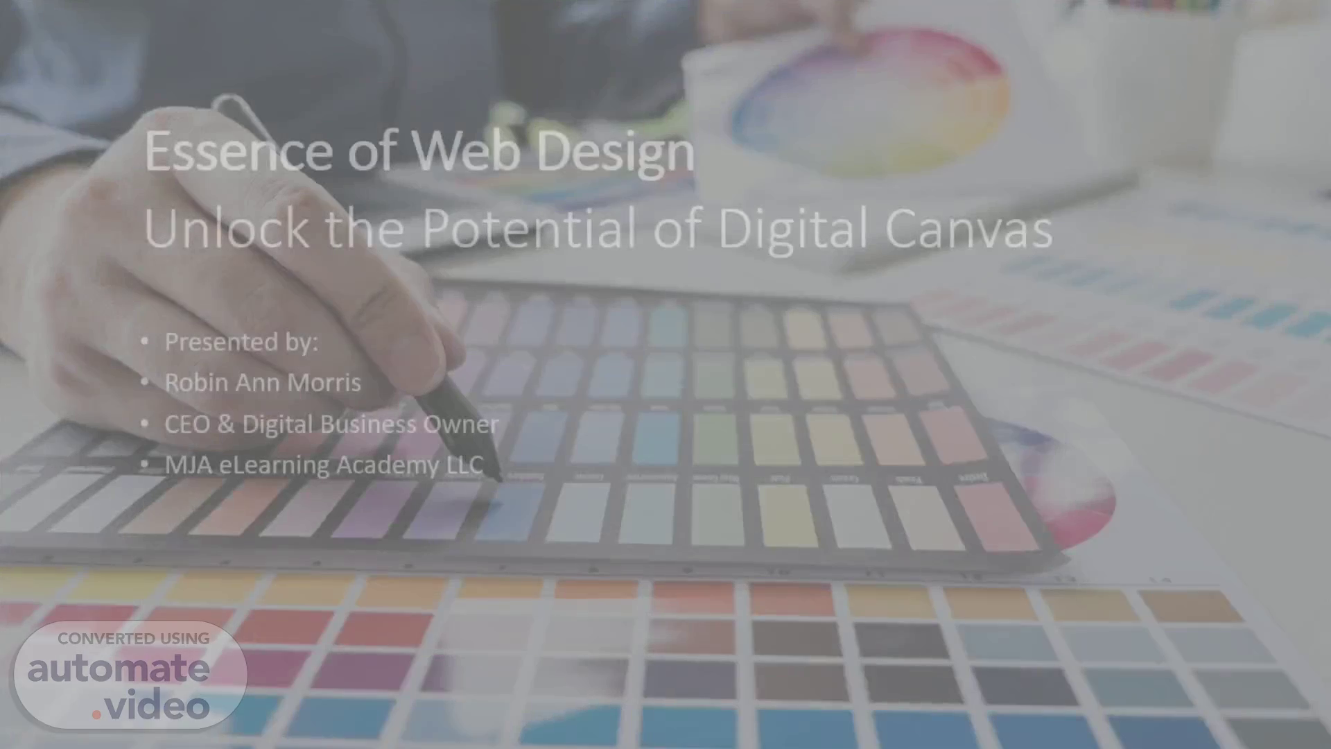 [Audio] Hello and welcome to the Essence of Web Design course. My name is Robin Ann Morris, the CEO & Digital Business Owner at MJA eLearning Academy LLC. Over the years, I've immersed myself in the fascinating world of web design, and today, I'm thrilled to share my insights, experiences, and knowledge with all of you. This course is meticulously crafted to guide you through the intricacies of web design, drawing from real-world scenarios and cutting-edge trends. While I've infused my knowledge and personal experiences into every aspect of this course, I've enlisted a talented voice artist to guide you through the material. This decision ensures consistency and clarity in the presentation. I trust you'll find immense value in the lessons ahead. Let's get started..