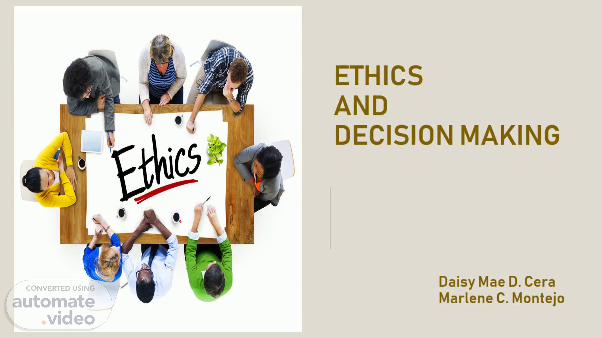 ETHICS AND DECISION MAKING. Daisy Mae D. Cera Marlene C. Montejo.