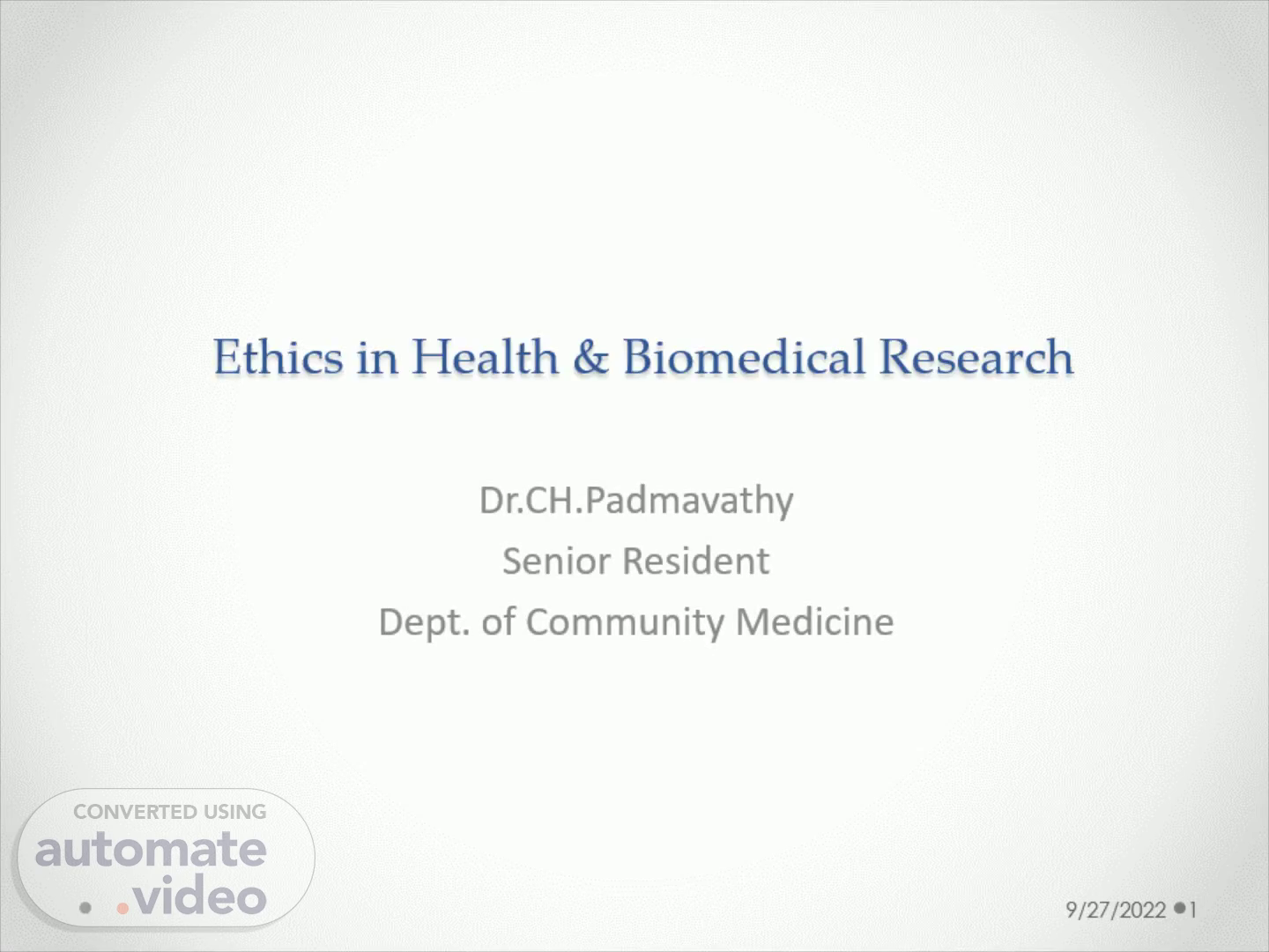 Ethics in Health & Biomedical Research. Dr.CH.Padmavathy Senior Resident Dept. of Community Medicine.