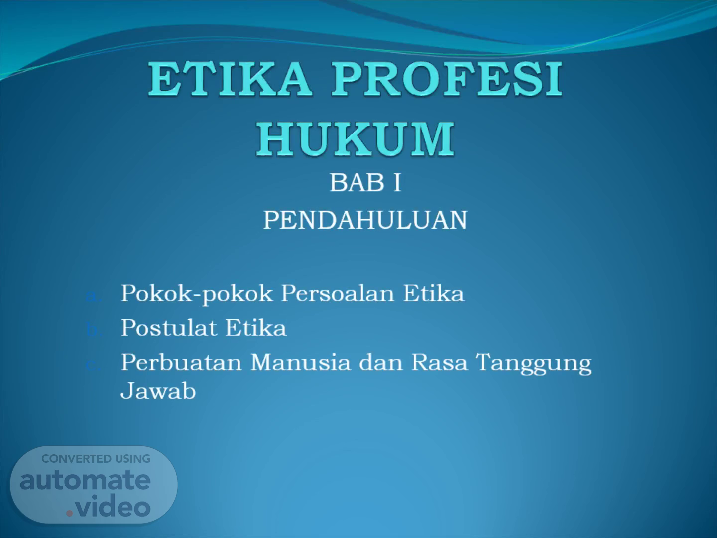 ETIKA PROFESI HUKUM. BAB I PENDAHULUAN Pokok-pokok Persoalan Etika Postulat Etika Perbuatan Manusia dan Rasa Tanggung Jawab.