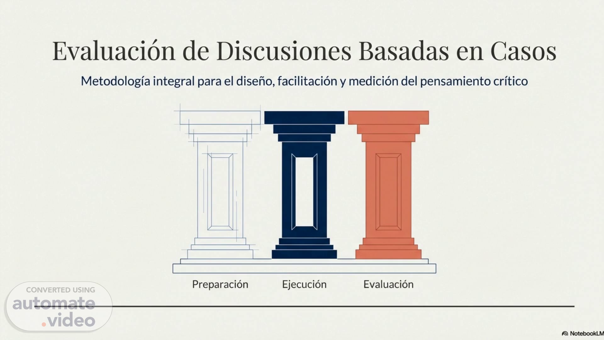 Evaluaci6n de Discusiones Basadas en Casos Metodologfa integral para el diseho, facilitaciön y mediciön del pensamiento critico Preparaciön Ejecuciön Evaluaciön NotebookLM.