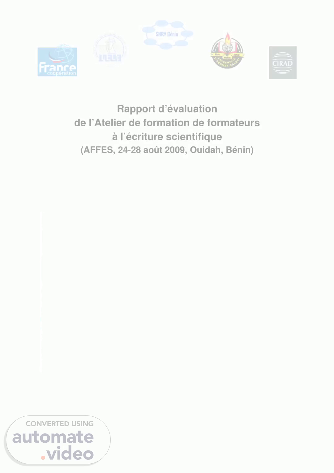 Rapport d’évaluation de l’Atelier de formation de formateurs à l’écriture scientifique AFFES, 24-28 août 2009, Bénin.