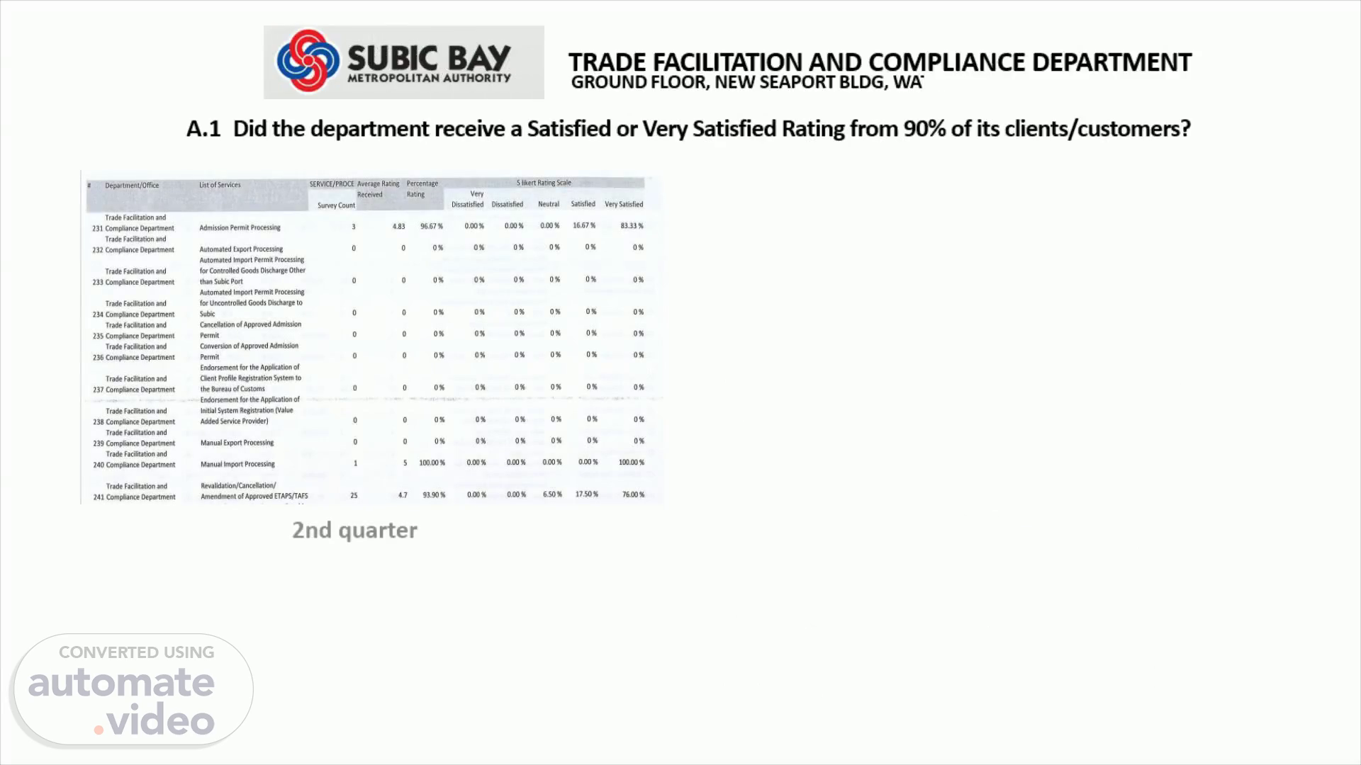 A. 5 ARTA process, Quality Policy, SBMA & Department Mission and Vision in the most conspicuous area of the office for its client and A. 6 Did the department has a well defined Department Manual/Charter etc..