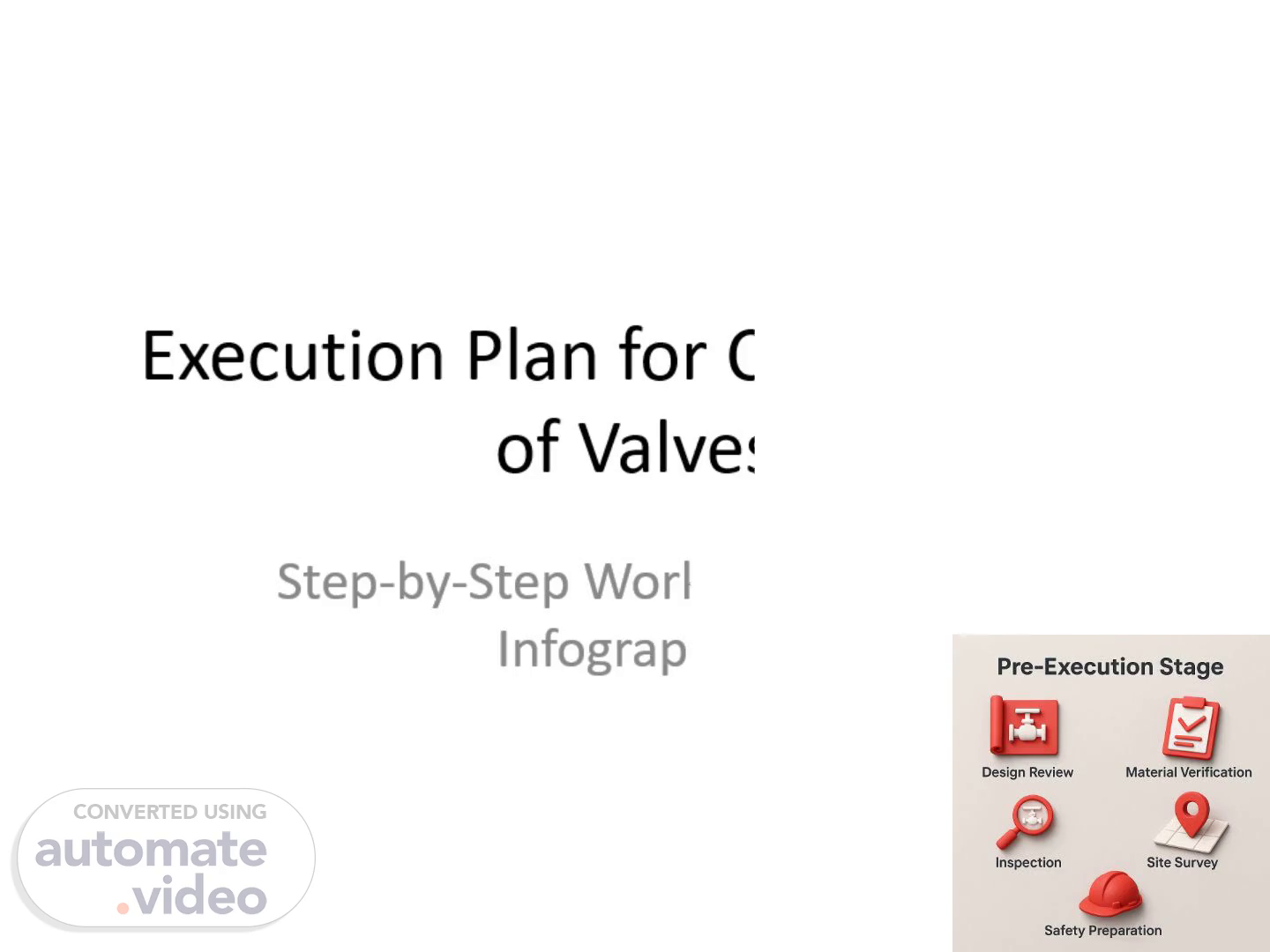 Execution Plan for Construction of Valves. Step-by-Step Workflow with 3D Infographics.
