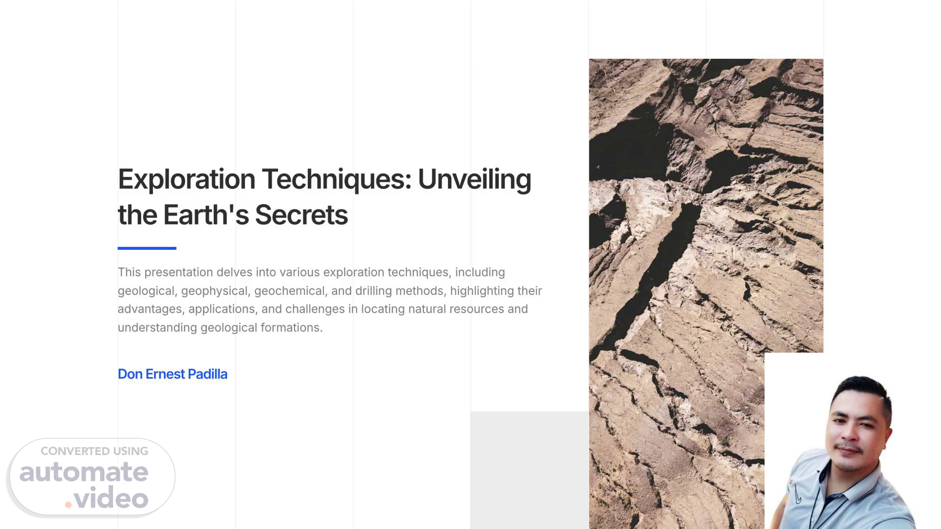 Exploration Techniques: Unveiling the Earth's Secrets This presentation delves into various exploration techniques, including geological, geophysical, geochemical, and drilling methods, highlighting their advantages, applications, and challenges in locating natural resources and understanding geological formations. Don Ernest Padilla createdUsing P' presentations D.